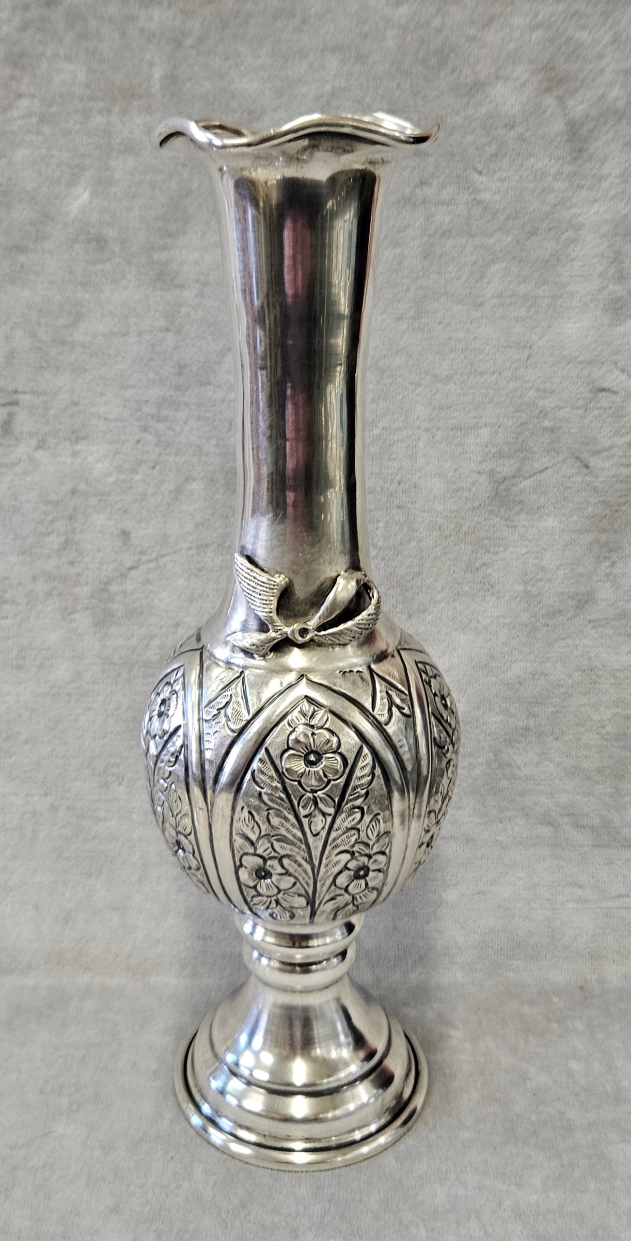Серебряная ваза. серебряный пр. 900 вес 288 г, рост 27 см. Обвенчались. основы. 7,5 см. клеймо ;900 и плохо читаемое ювелирное изделие. 19/20 века