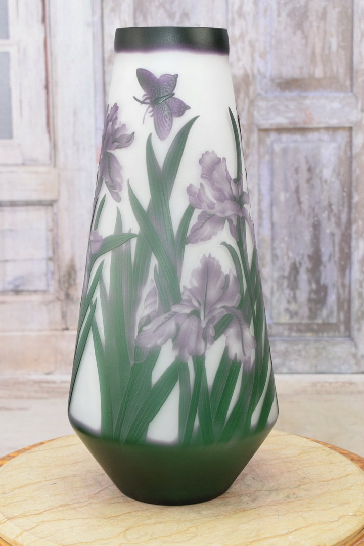 Эмиль -галлевая ваза - толстое стекло - растения - подписанный подарок
