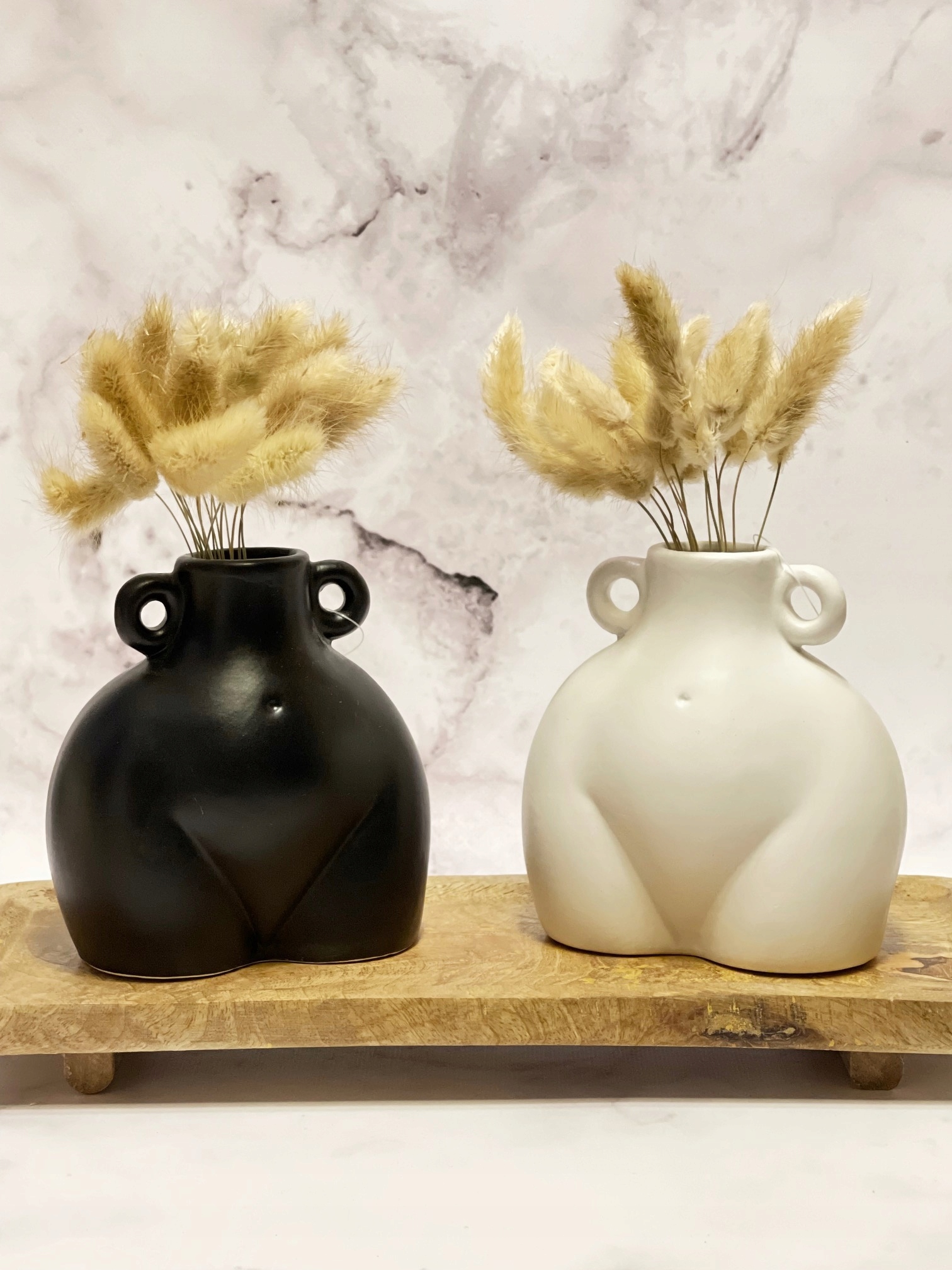 СОВРЕМЕННАЯ ВАЗА - ЖЕНСКАЯ ПОПКА С СУШЕННОЙ ТРАВОЙ / ЧЕРНАЯ