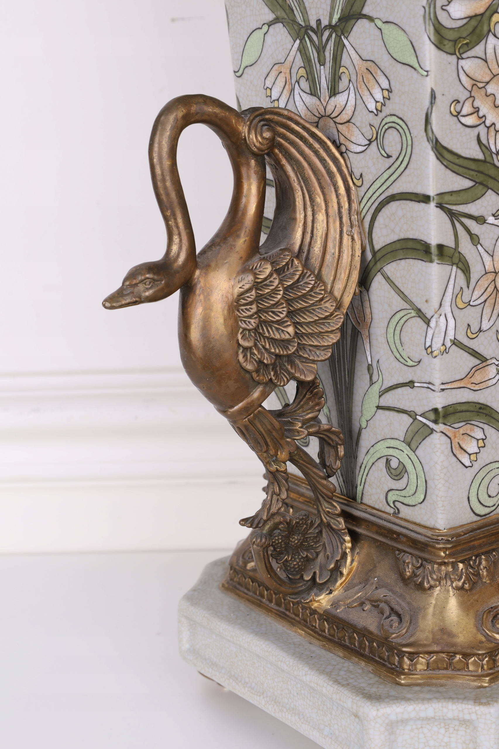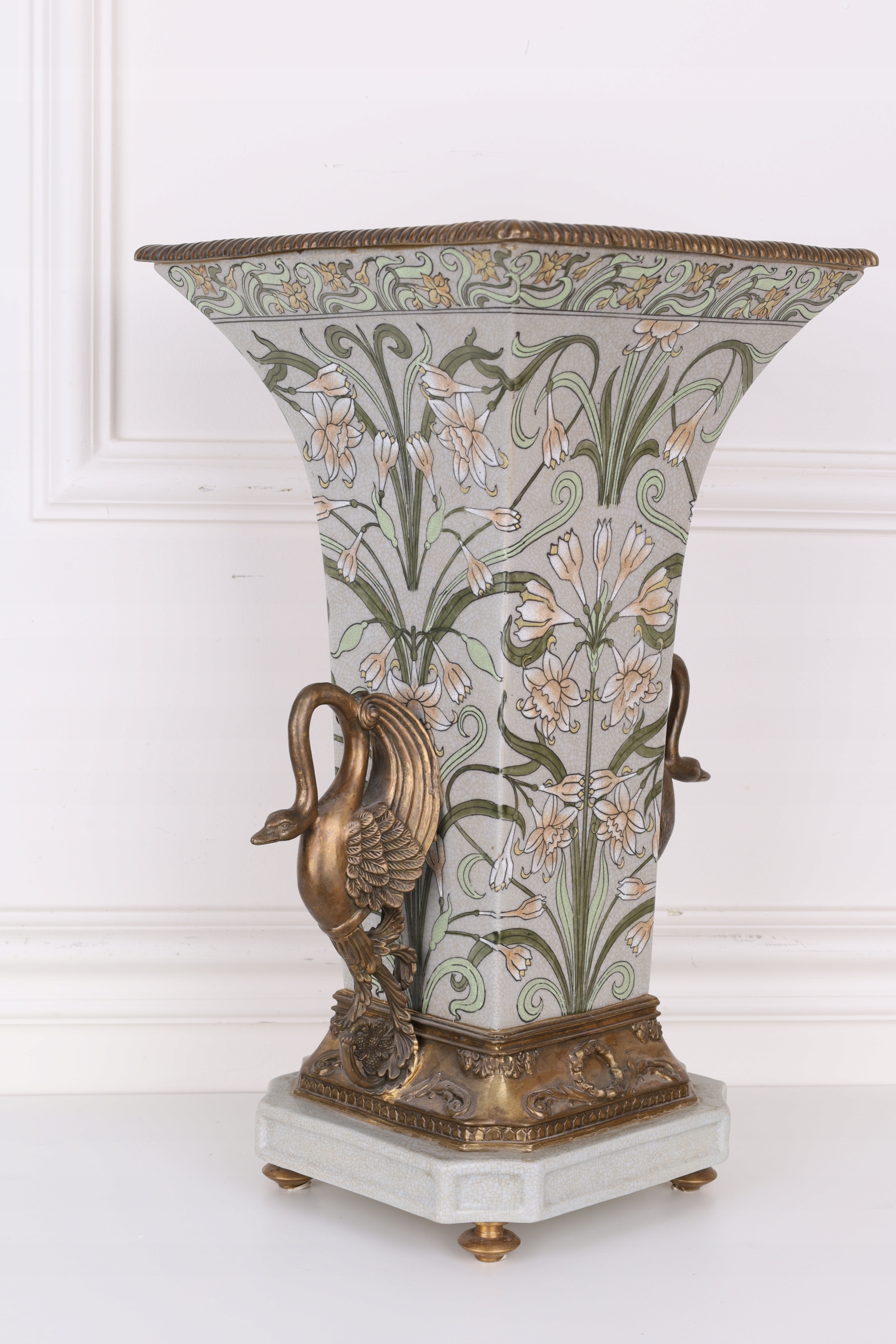 ВАЗА ВЕЛИКА З ЛЕБЕДЕМ - порцеляна з бронзою
