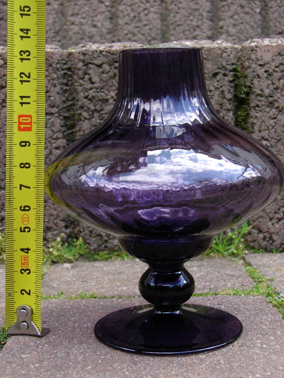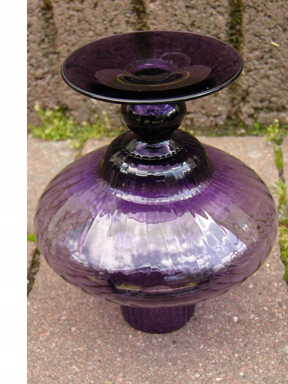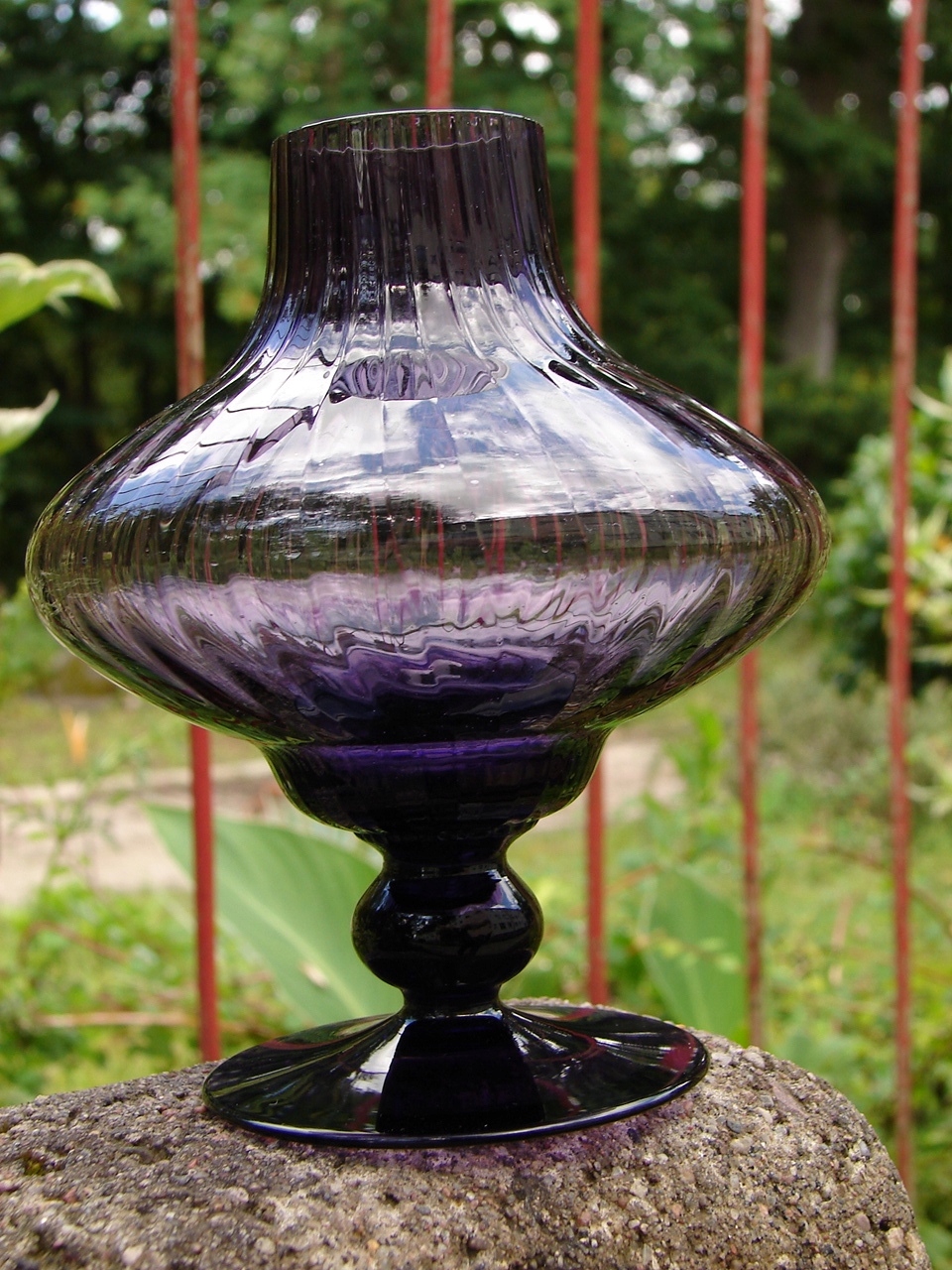 ваза на ноге, сделанная из полного фиолетового стекла.