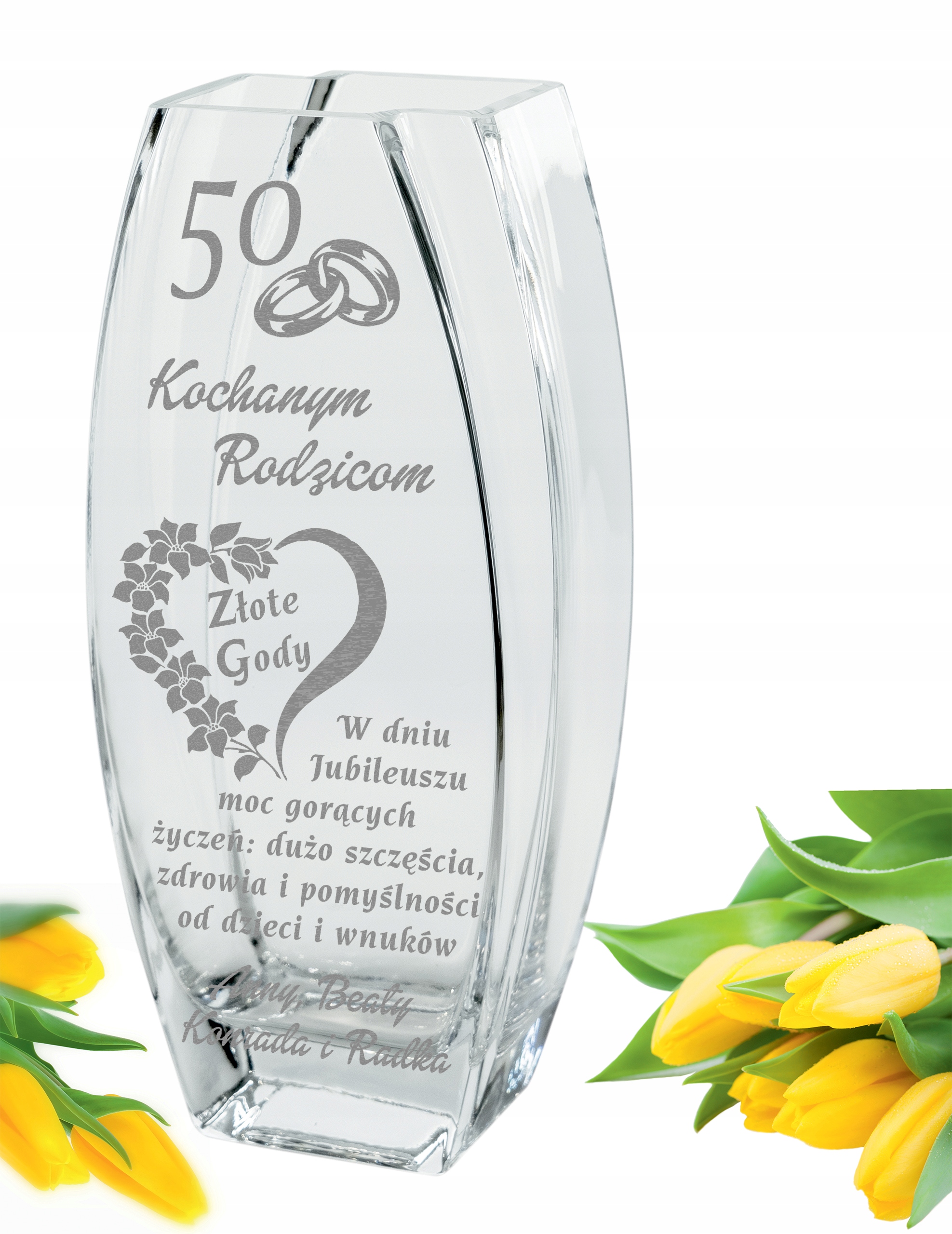 Ваза з ГРАВІЮВАННЯМ 32см ДЕНЬ НАРОДЖЕННЯ ЮВІЛЕЙ
