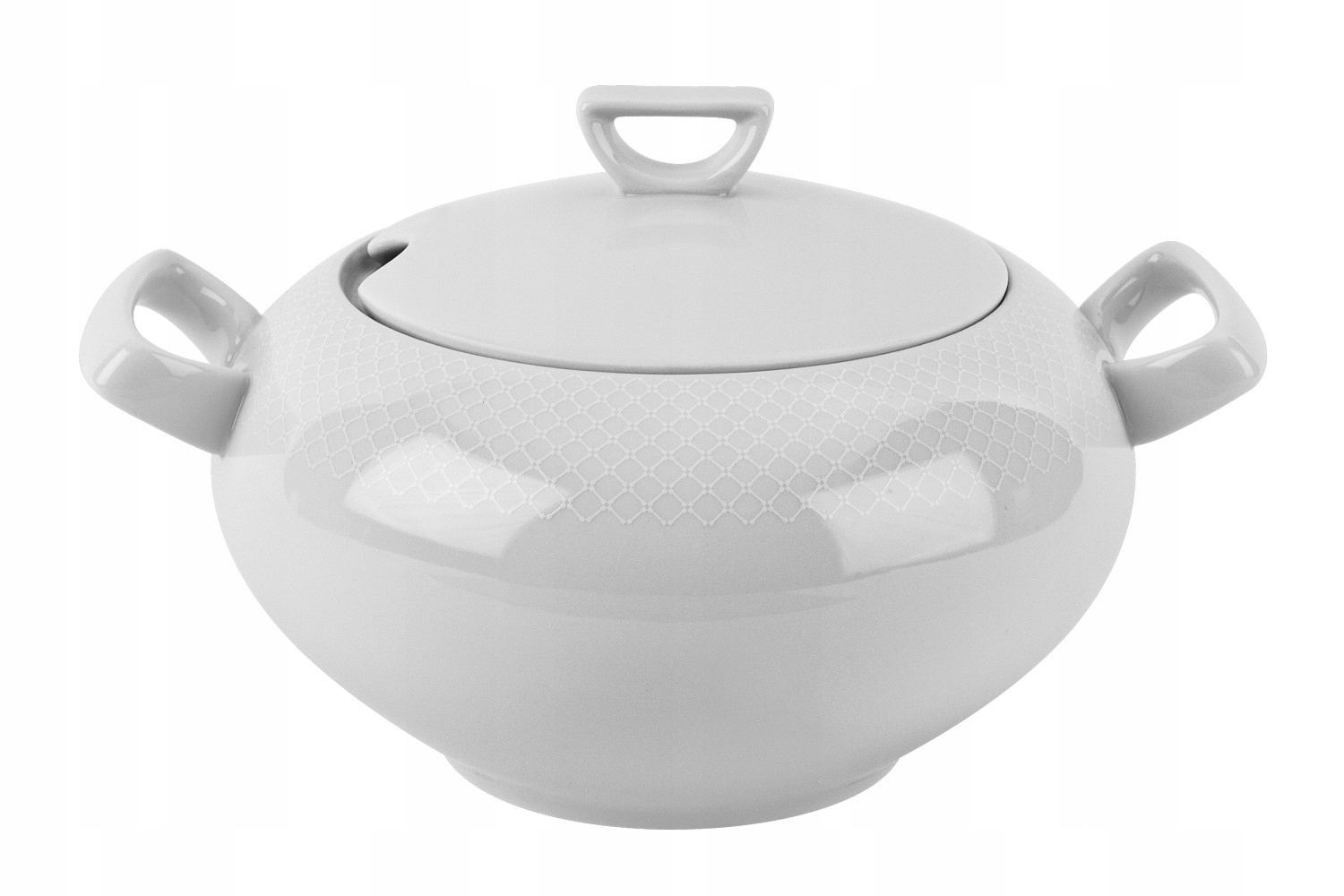Фарфоровая ваза с крышкой, украшенной мелкой сеткой.