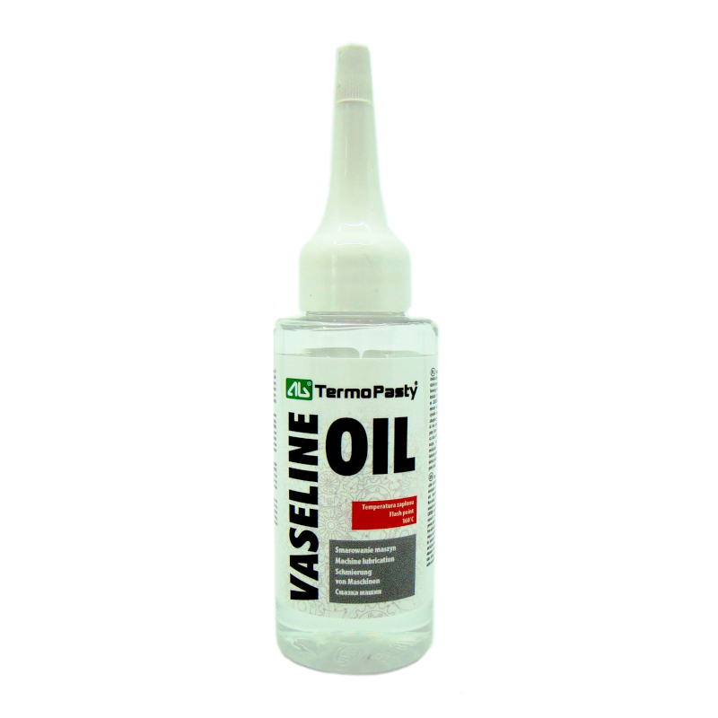 Вазелиновое масло от AG Termopasty – смазка для деталей машин и точных механизмов. Его задача – снизить трение и сохранить элементы, подверженные воздействию погодных условий. Препарат дополнительно защищает пластиковые и резиновые изделия от прилипания к формам. Вазелиновое масло для смазки используется для устранения скрипов и скрежетания. Более того, его применение облегчает скольжение во время работы устройств. Продукт нельзя хранить рядом с окисляющими веществами.
