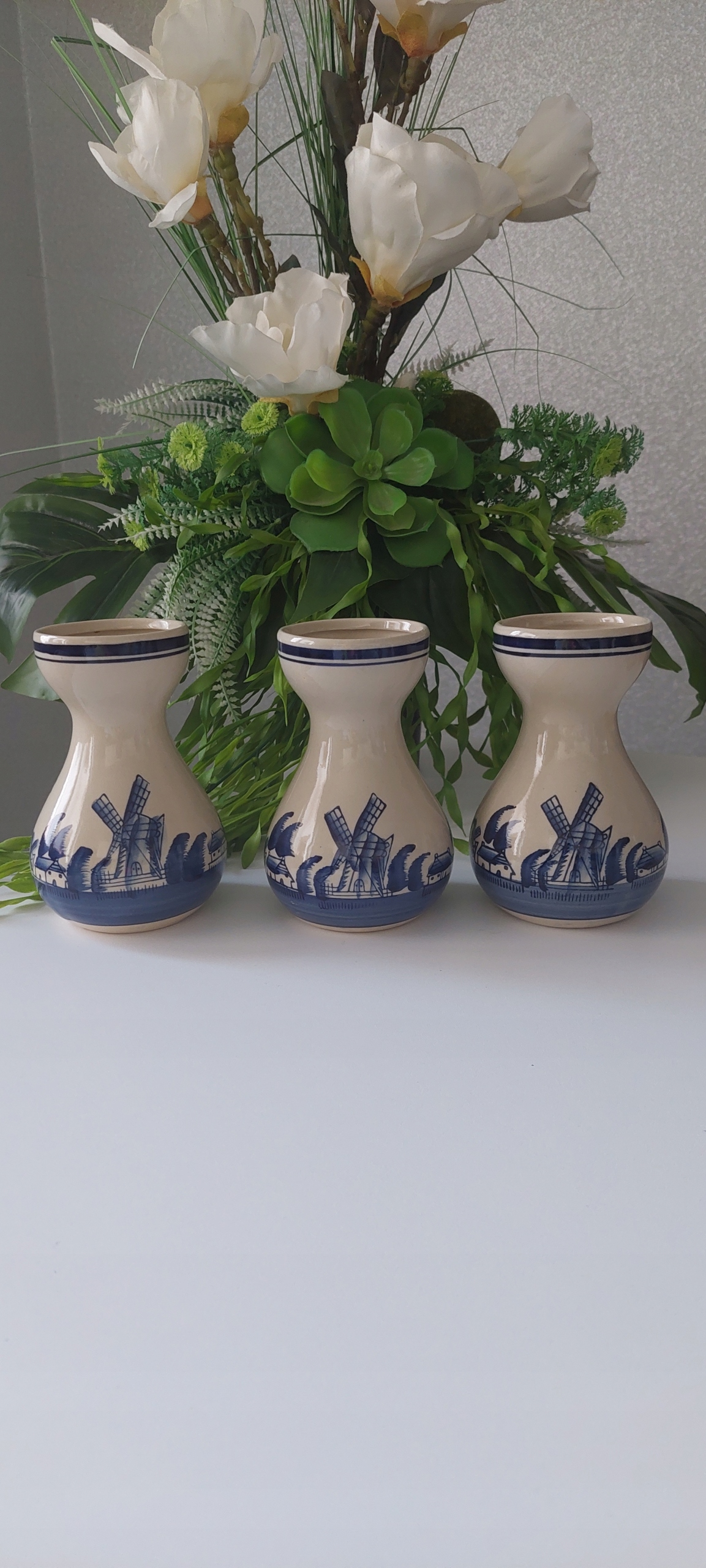 Набор из трех ваз в очень хорошем состоянии с высотой размеров 14 см, диаметром инфузии 7 см.