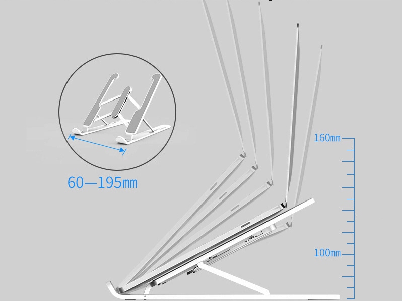 Стильная подставка для ноутбука обеспечивает безопасные и комфортные условия работы, размещая ноутбук на той высоте, на которой мы обычно работаем с монитором настольного компьютера. Подставка изготовлена из прочного, прочного, устойчивого к коррозии и легко чистящегося материала ABS, а поперечные усиления выполнены из алюминия.