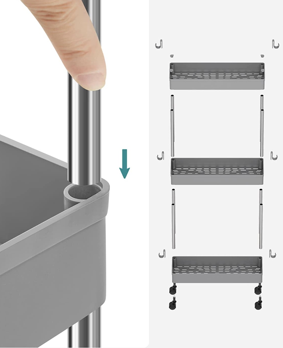 Кухонная тележка оснащена колесами, которые позволяют легко передвигать ее по кухне. Благодаря этому его можно свободно перемещать в разные места, что особенно полезно при готовке, когда нужен быстрый доступ к различным инструментам.