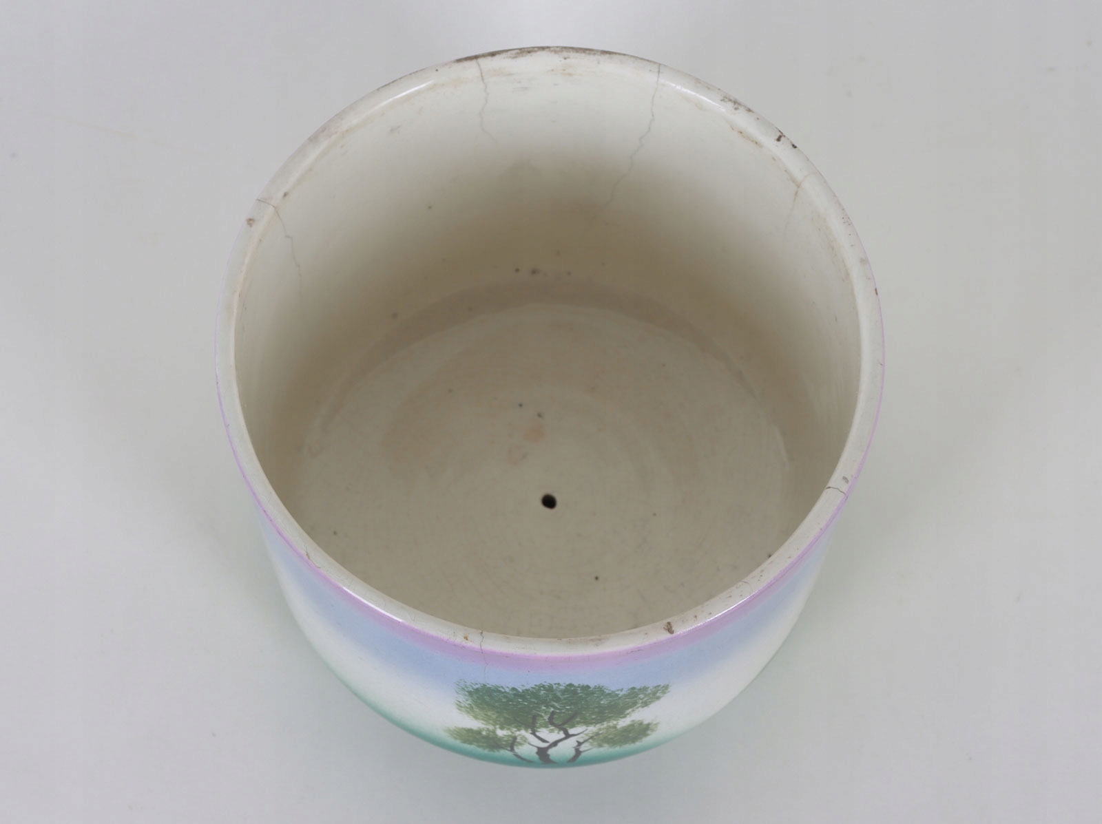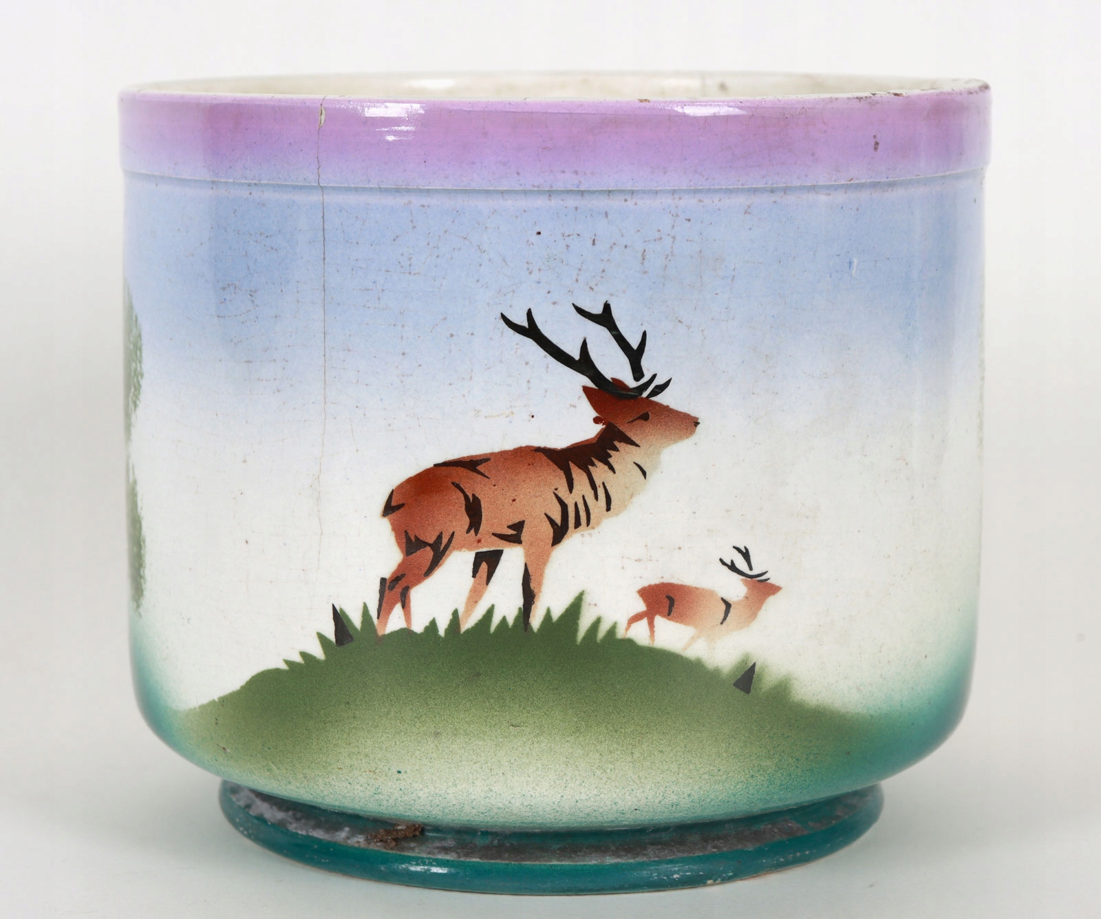 Цветочный горшок из глазурованного фаянса. Вазон украшен охотничьим мотивом - шаблон с ручной росписью.