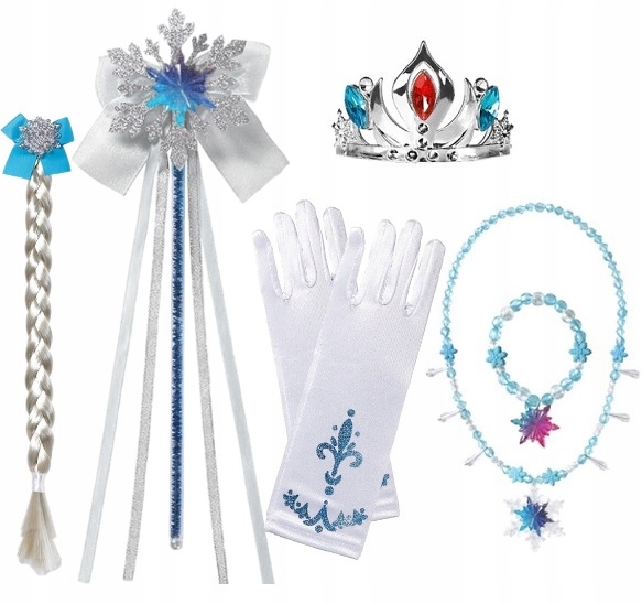 НАряд ЭЛЬЗЫ ПЛАТЬЕ «ЭЛЬЗА ХОЛОДНОЕ» ДЛЯ КАРНАВАЛЬНОГО БАЛА 104/110 СМ (С ЭТИКЕТКОЙ 110) БЕЛЫЙ НАБОР ИЗ 6 ДЕТАЛЕЙ