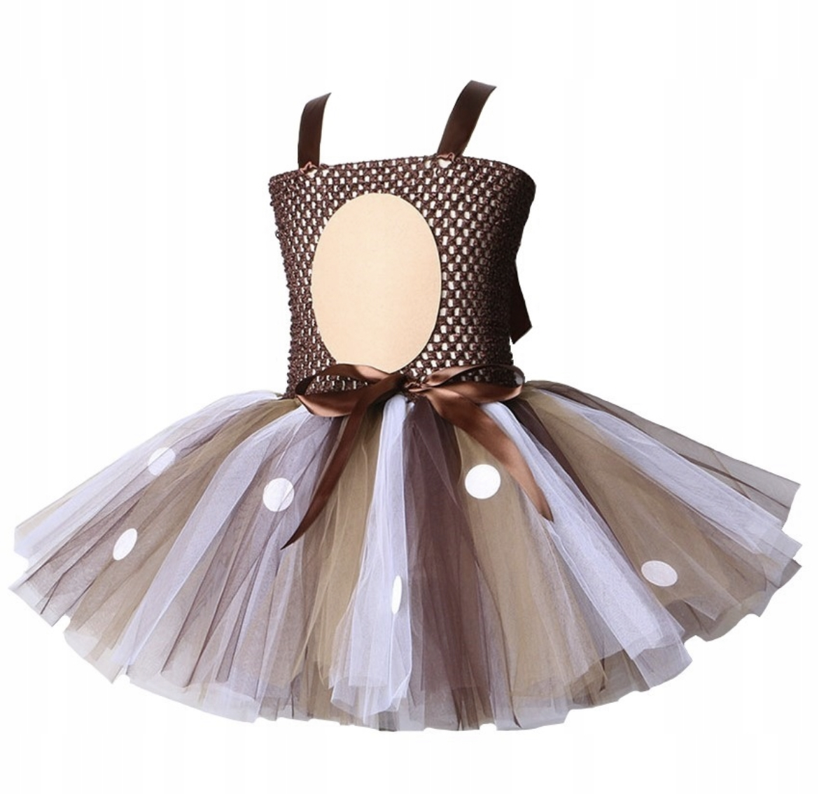 ✅ Платье: платье состоит из трех слоев тюля, благодаря чему оно расплывается , это прекрасно подходит. Тюль нескольких оттенков коричневого цвета, украшенный снаружи белыми точками. Корсет из сетчатого эластичного материала, украшенный цветами. Бретели завязать бантиком самостоятельно.