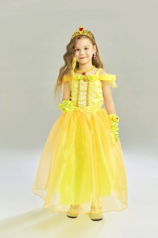 Идеальный наряд для маленьких девочек, особенно для поклонниц культовой сказки «Красавица и Чудовище», добротно выполненный, в оттенках желтого и золотого. Благодаря нашему предложению каждая девочка сможет почувствовать себя своей. любимый сказочный персонаж. Интересный костюм – это всегда путешествие в волшебную сказочную страну, которая напомнит вам детство.