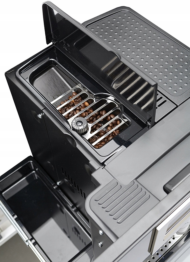 Контейнер вмещает около 200 г кофейных зерен, из которых требуется соответствующая порция. каждый раз берется и автоматически измельчается зерно для получения наилучшего вкуса в каждой чашке кофе. Сообщение на дисплее устройства информирует о необходимости долить кофе в контейнер.