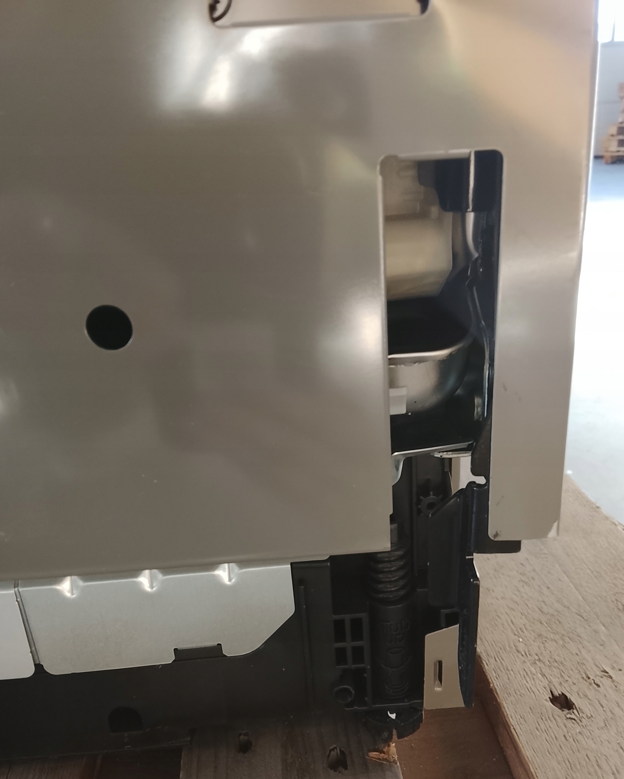 Встроенная посудомоечная машина б/у, на корпусе есть несколько видимых царапин/вмятин. Может содержать остатки моющего средства и воды. Интерьер выглядит красиво, но присутствует затхлый запах. После подключения к питанию он включается и подсвечивается снизу; пульт управления меняет режимы работы (через некоторое время появляется ошибка – вероятно, из-за отсутствия доступа к воде). В комплект поставки не входит руководство пользователя.