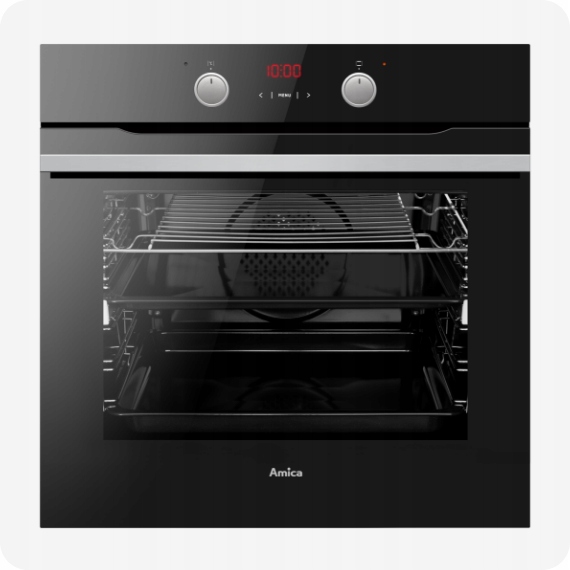 При вытаскивании нагретого подноса с горячей едой можно легко обжечься и есть риск уронить поднос. Не в духовках Amica! Все благодаря гидам. Благодаря им вы сможете в полной безопасности вставлять и вынимать даже горячий и сильно нагруженный лоток, без риска ожогов.