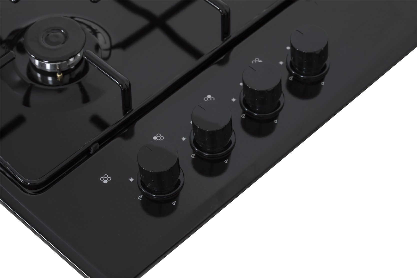 Плитная панель шириной 60 см имеет черную матовую поверхность. В распоряжении пользователя 4 конфорки, включая турбоконфорку мощностью 3500 Вт. Управление устройством осуществляется с помощью ручек, расположенных сбоку устройства. Варочная панель оснащена защитой от утечки газа, которая перекрывает его подачу в случае случайного затухания пламени.