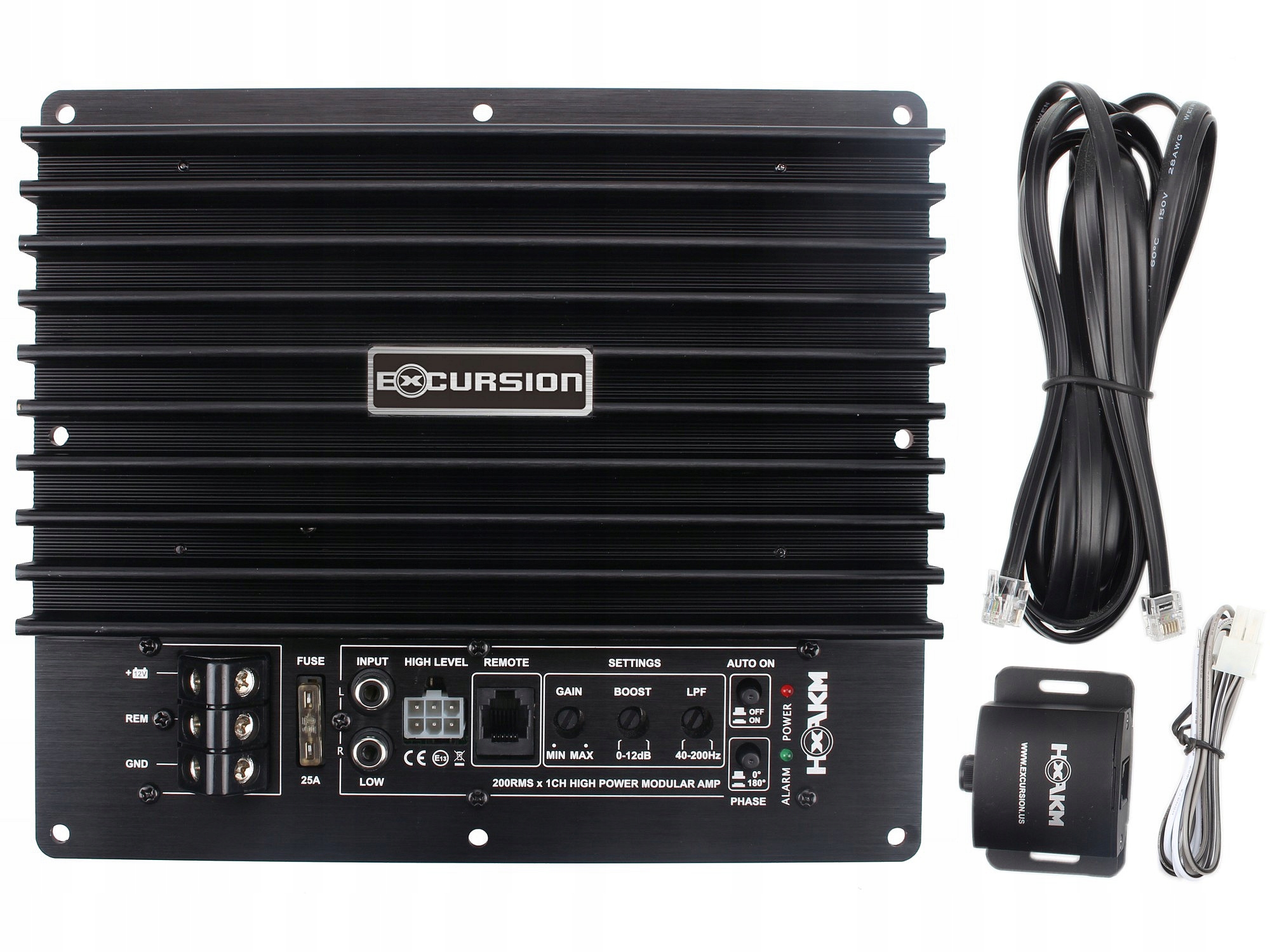 Модуль с 1-канальным усилителем мощностью 120/200Вт (4?/2?) вместе с необходимым регулирующим оборудованием, предназначенный для удобной установки в вырезанное прямоугольное отверстие, например, в боку автомобиля ствол. Все разъемы и органы управления на передней панели модуля герметичны, что делает его очень подходящим для установки непосредственно в стену пассивного сабвуфера, превращая его в активный сабвуфер, что экономит много места в автомобиле. В комплект входит дистанционный регулятор громкости сабвуфера с кабелем.