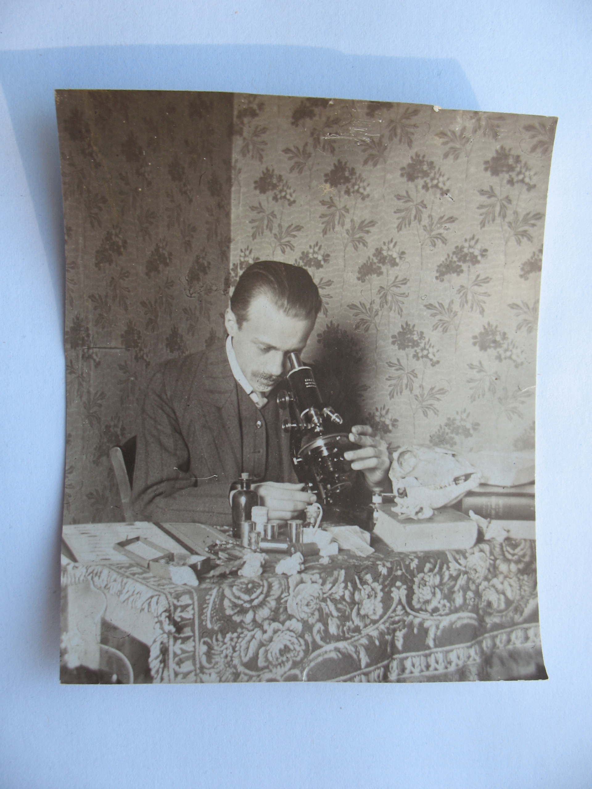 Ученый с микроскопом Pre -War Microscope Photo 1911.