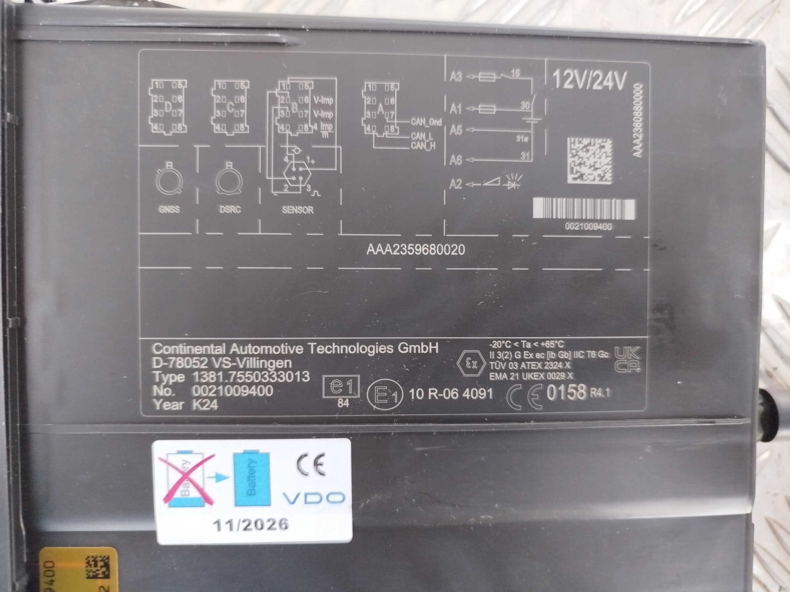 VDO Tachograph Завершите новый тип AAA235990020
