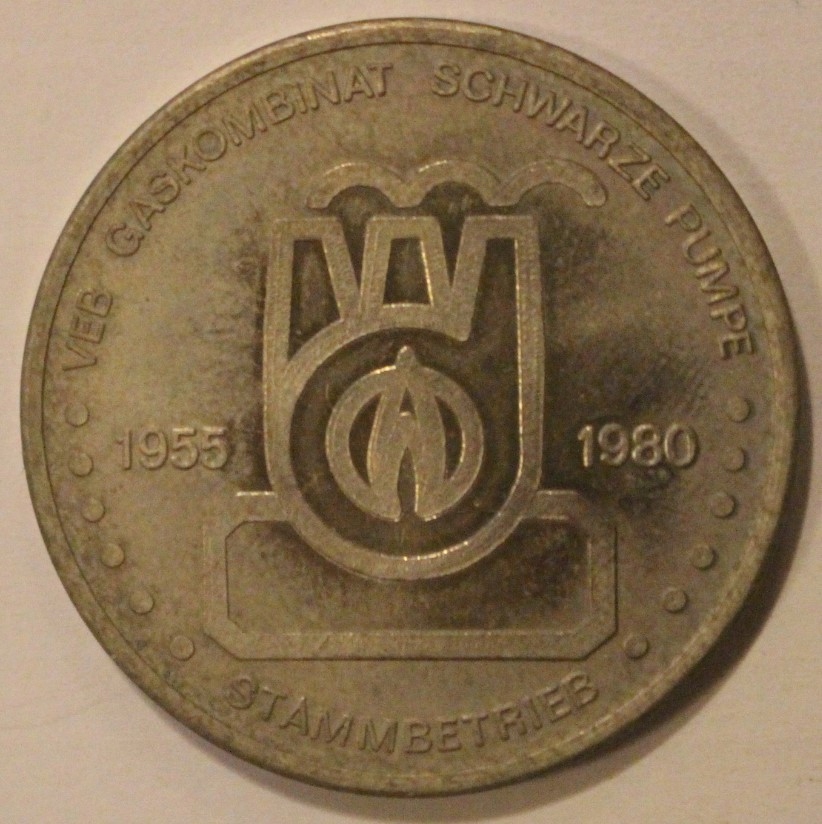 VEB GASKOMBINAT SCHWARZE PUMPE 1955 - 1980 - STAMMBETRIES - MEDAL, NIEMCY