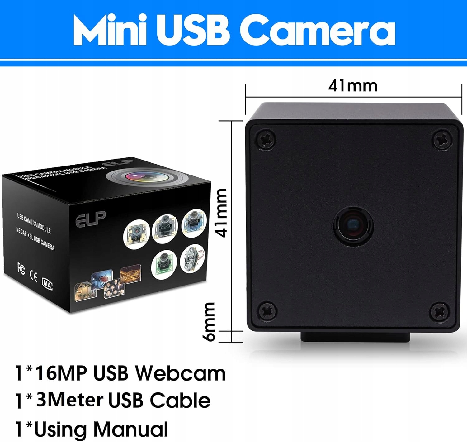 Веб-камера ELP 16 МП с автофокусировкой и металлическим корпусом — миниатюрная веб-камера UVC USB 2.0 4K с объективом без искажений 68° и сенсором IMX298 для наблюдения за компьютером и дома