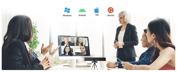 Камера совместима с Windows, Android, iOS, Ubuntu и т. д. Она поддерживает множество видеоприложений, включая ZOOM, SKYPE, QQ, WeChat, Google Meet, Microsoft Teams, WebEx, Fastmeeting. , ЖУМУ , Polycom и т. д.