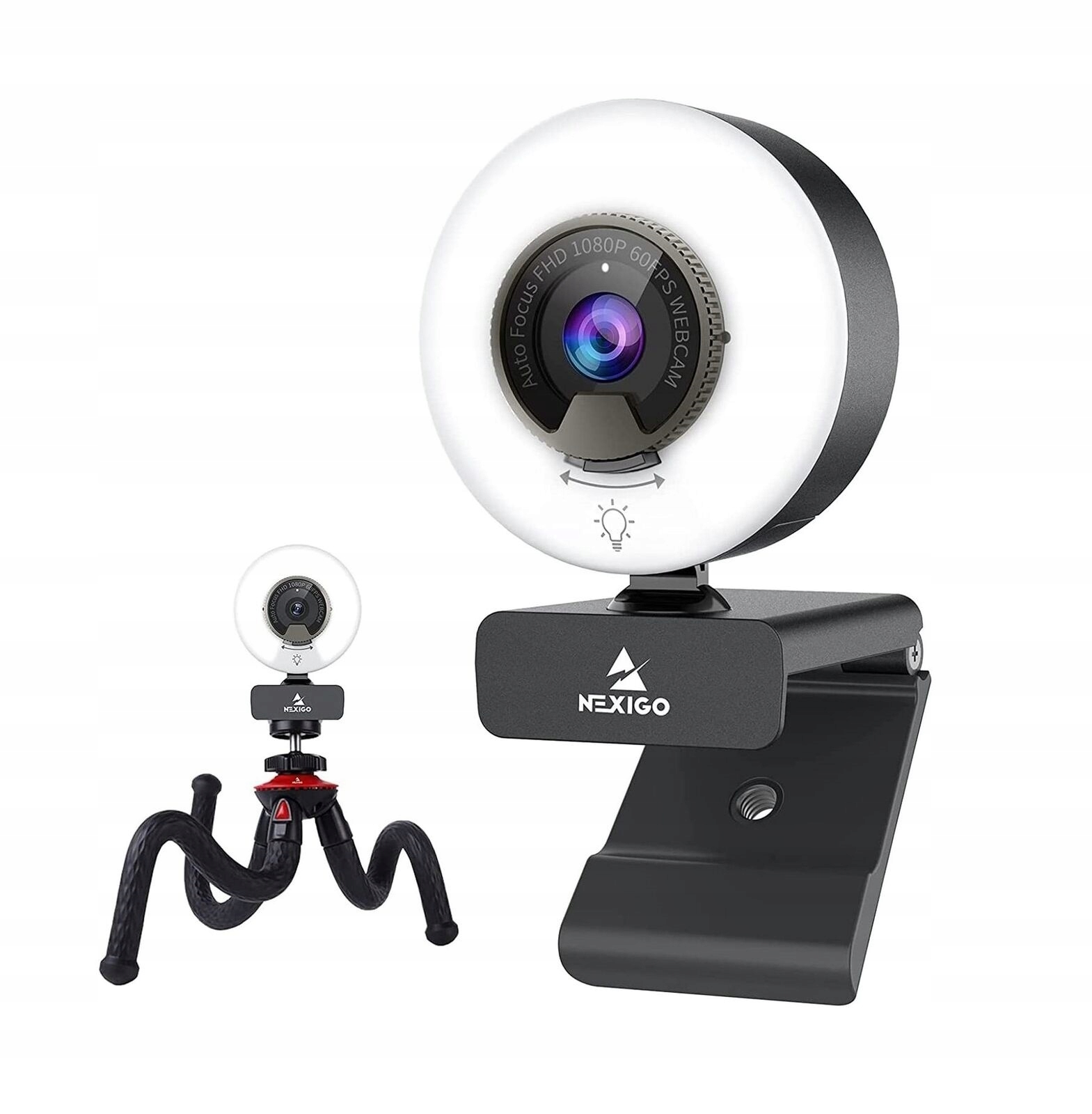 Веб-камера NexiGo N960E, 60 кадров в секунду, 1080P с автофокусом, 2 стереомикрофонами, кольцевой подсветкой, блендой и USB-камерой для потоковой передачи онлайн-курсов