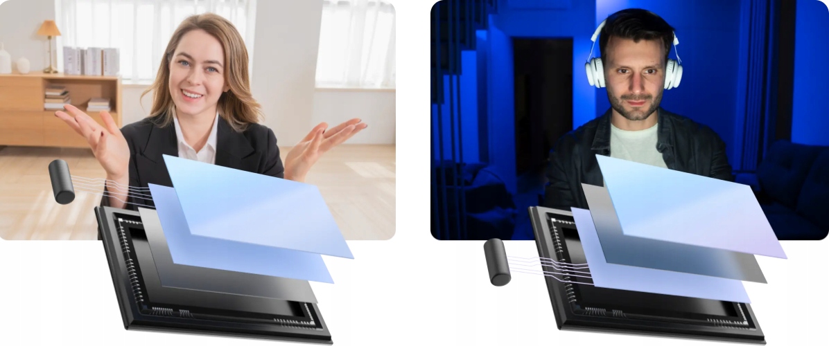 Двойная нативная технология ISO оптимизирует чувствительность матрицы камеры для дневного света и вечернего освещения. Его использование в Obsbot Meet SE является уникальной редкостью среди устройств в этой категории цен.