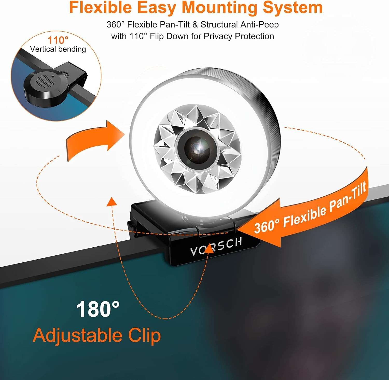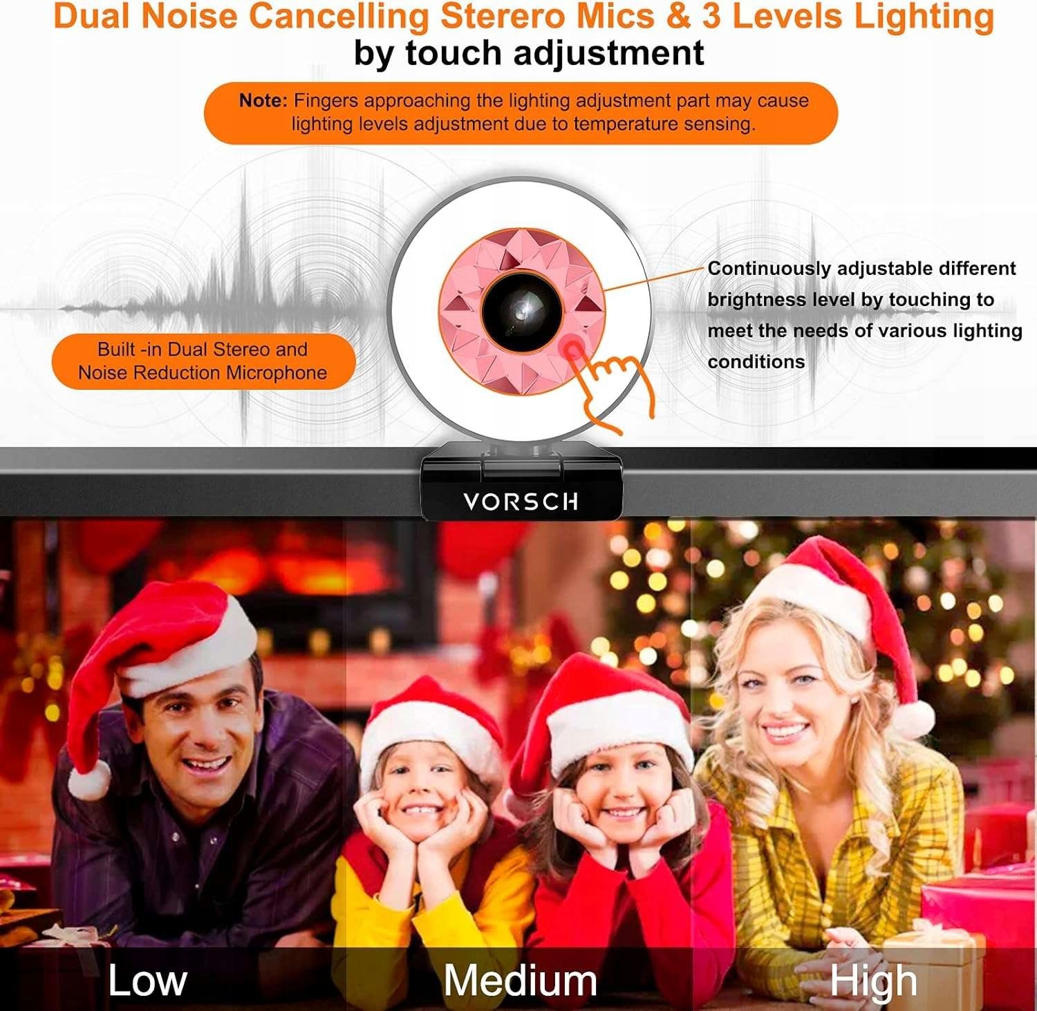 Веб-камера VORSCH обеспечивает четкое изображение в формате FHD 1080p благодаря CMOS-чипу и технологии автофокусировки. Идеальное освещение гарантирует трехступенчатый заполняющий свет, идеально подходящий для записи в темных помещениях.