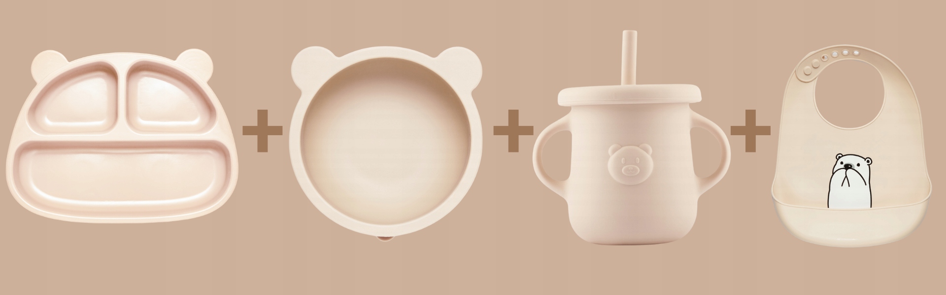 Ужин для детей с мотивом плюшевого мишка b> - идеальный набор для малышей, который сочетает в себе функциональность и очаровательный дизайн. Комплект включает в себя тарелку, чашу, чашку и нагруднику, создавая практическую набор для ежедневных блюд. Все элементы хранятся в элегантном бежевом цвете и украшены очаровательным узором плюшевого мишка, который, безусловно, понравится самым молодым. Блюда изготовлены из прочных и безопасных материалов, простых в чистке, а мягкий нагрудник эффективно защищает детскую одежду от грязи. Это отличный выбор как для дома, так и для поездок!