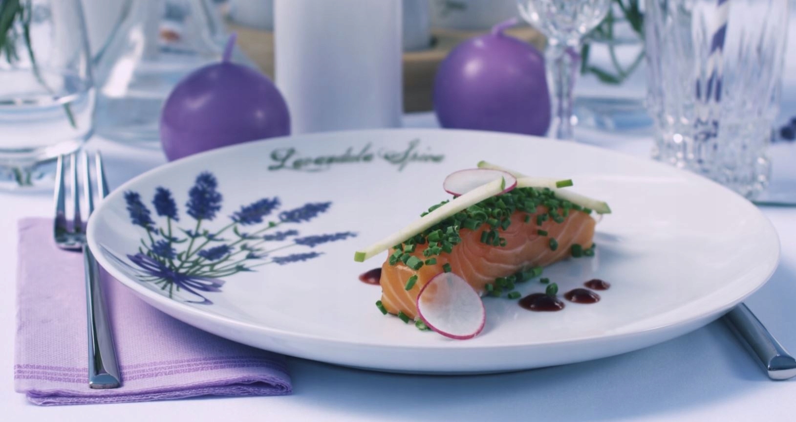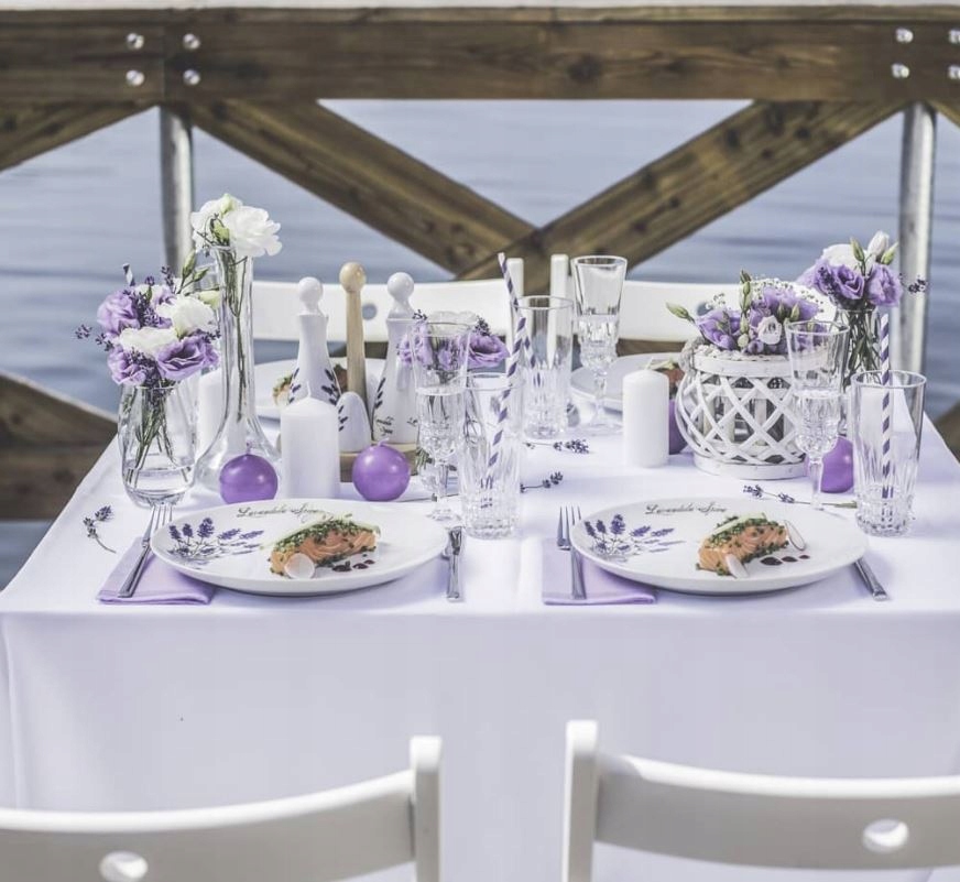 Это уникальная фарфоровая пластина сделает обычную еду приятной . Ваши гости будут в восторге от презентации блюда для снега -фарфора, украшенного красивыми лавандовыми цветами.