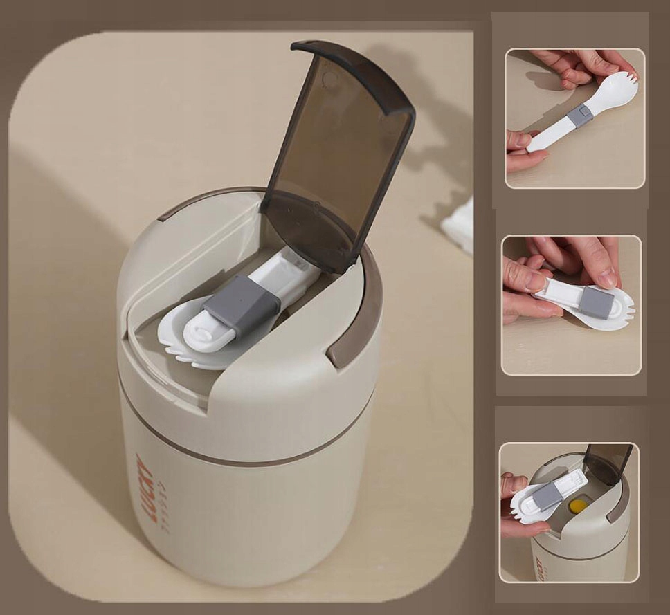 ✅ Интерьер и миска из нержавеющей стали: идеальный контейнер для суповых гурманов. В дополнительной миске мы можем хранить, например, макароны или гренки. Чаша имеет крышку. Набор также включает в себя ложку