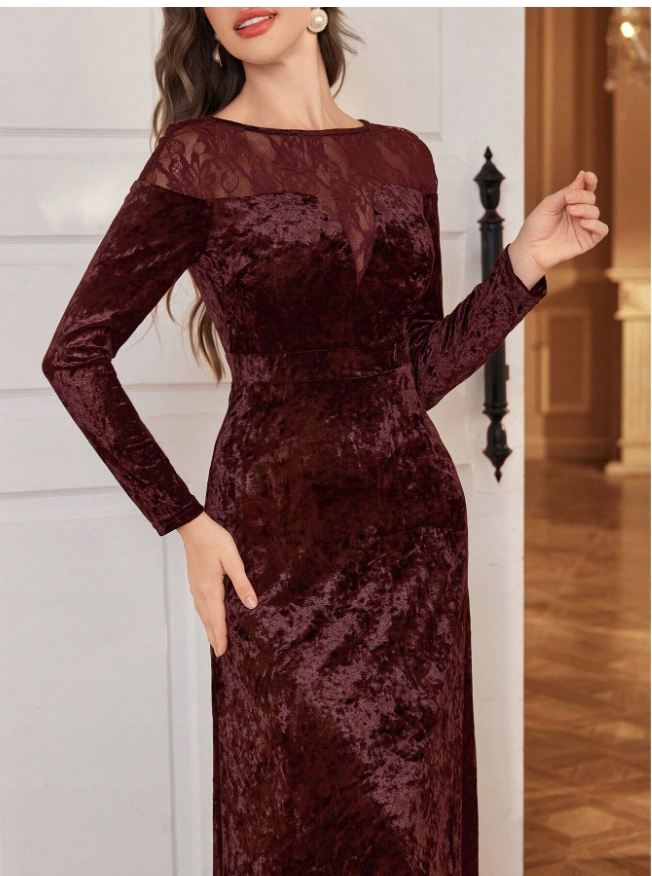 ВЕЧЕРНЕЕ ПЛАТЬЕ SHEIN КРУЖЕВНОЕ БАРХАТНОЕ ПЛАТЬЕ ПР.М L161085