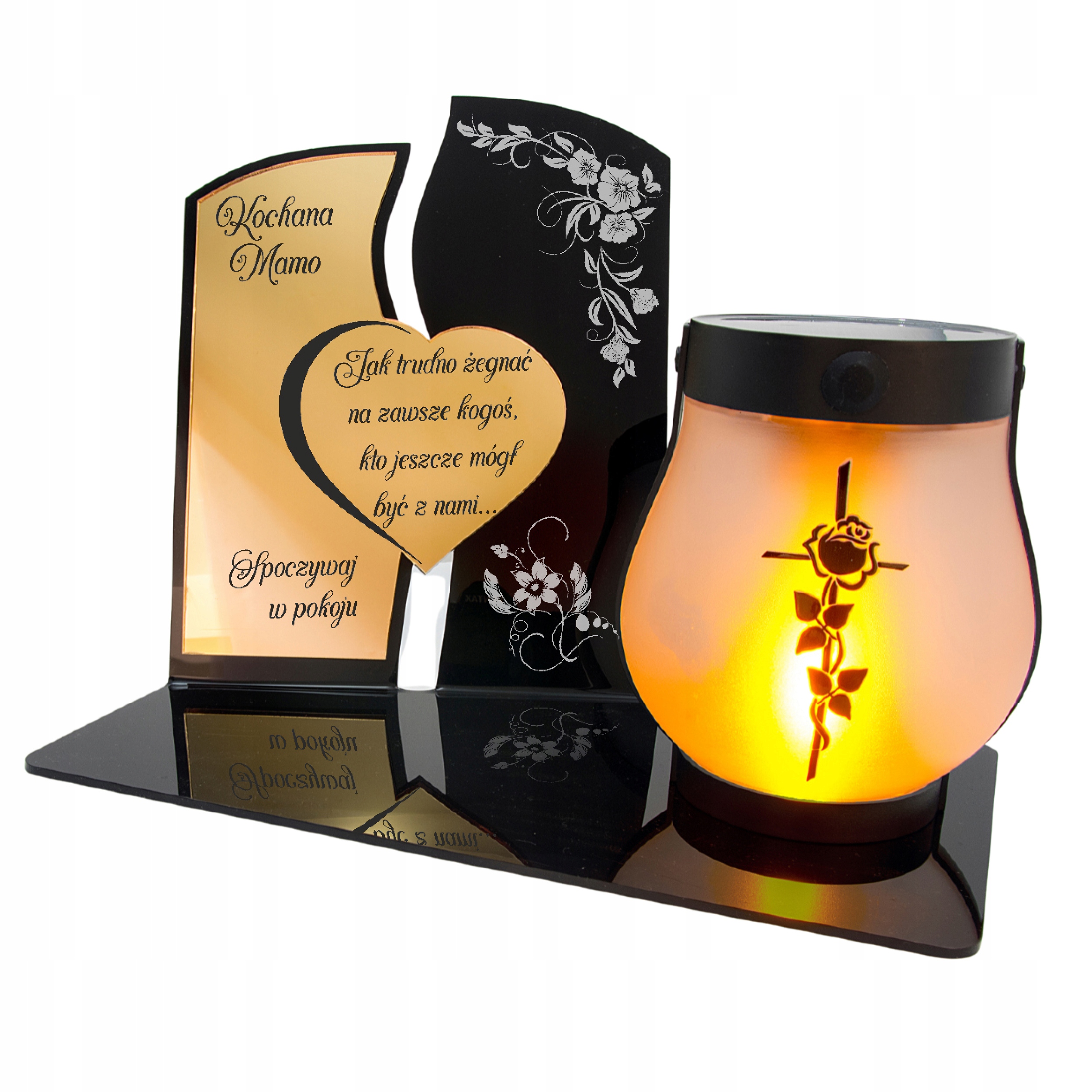 🌹 Элегантная могильная свеча для мамы - сердце с золотыми вставками и солнечная лампада 🌹