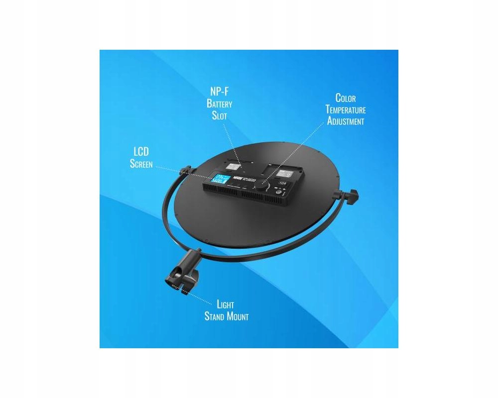 Конструкция лампы позволяет установить его с помощью встроенной ручки на лампольной штативе. Конструкция также позволяет настроить угол плоскости панели.