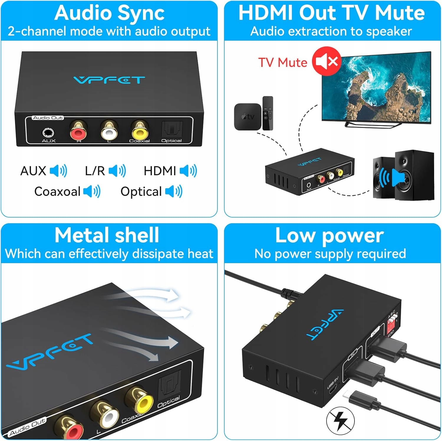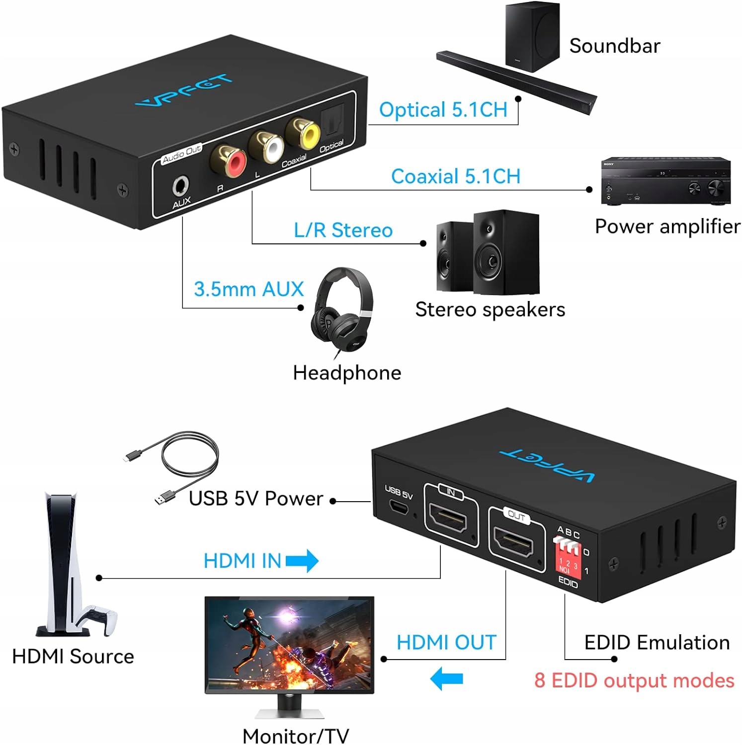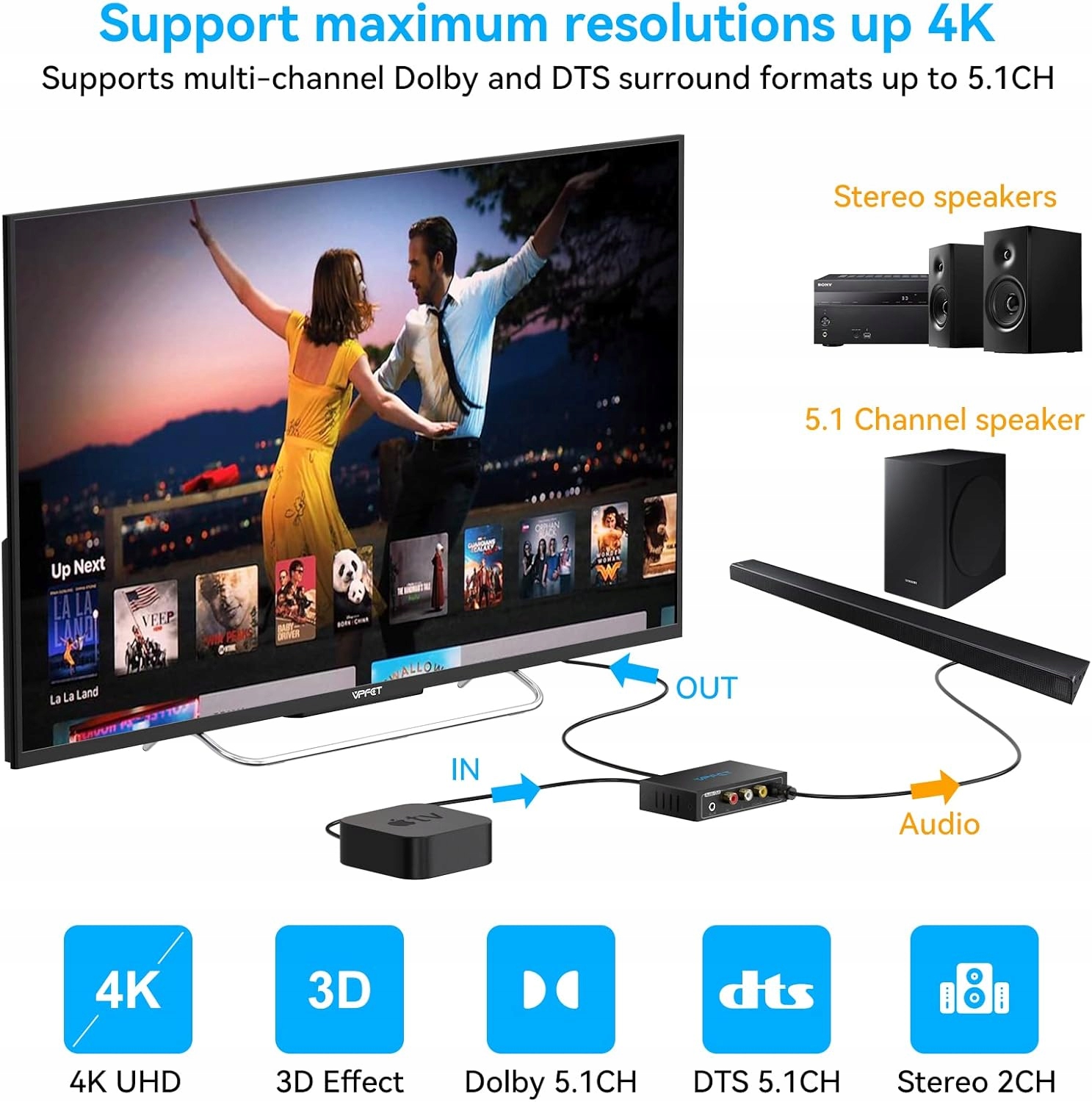 VEDINDUST SOUND Extractor HDMI 4K 4: 2: 0 Оптический аудио -разветок