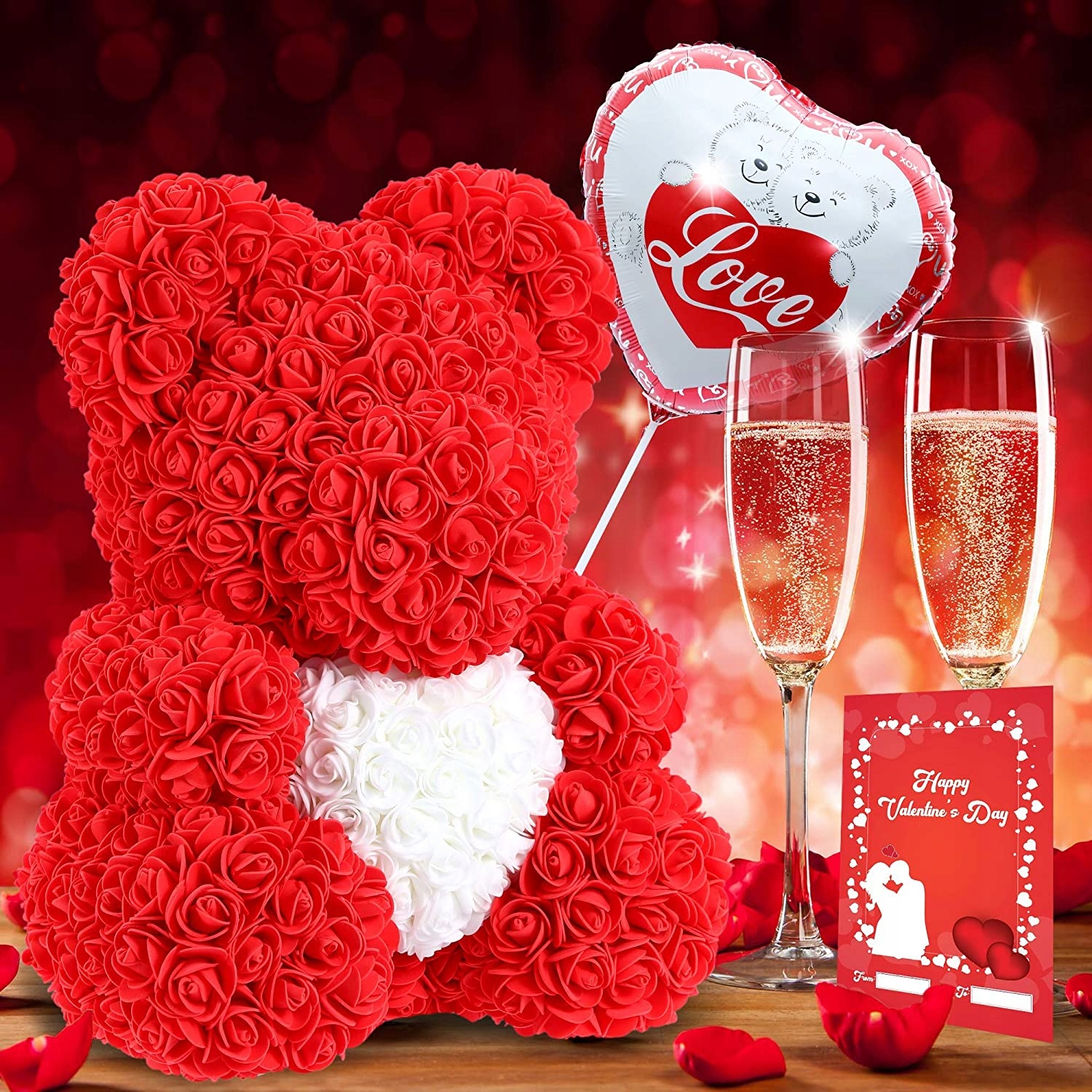 ВЕДМЕДЬ З ТРОЯНДАМИ 25 СМ ПОДАРУНОК КВІТКА НА ДЕНЬ СВЯТОГО ВАЛЕНТИНА БЕЗКОШТОВНО LED СВІТЛІ