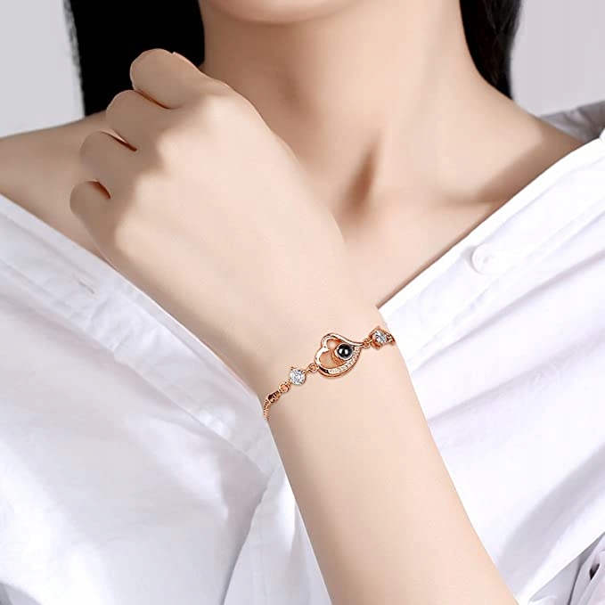 - Браслет с голограммой из розового золота со словами «Я ЛЮБЛЮ ТЕБЯ» на 100 языках
