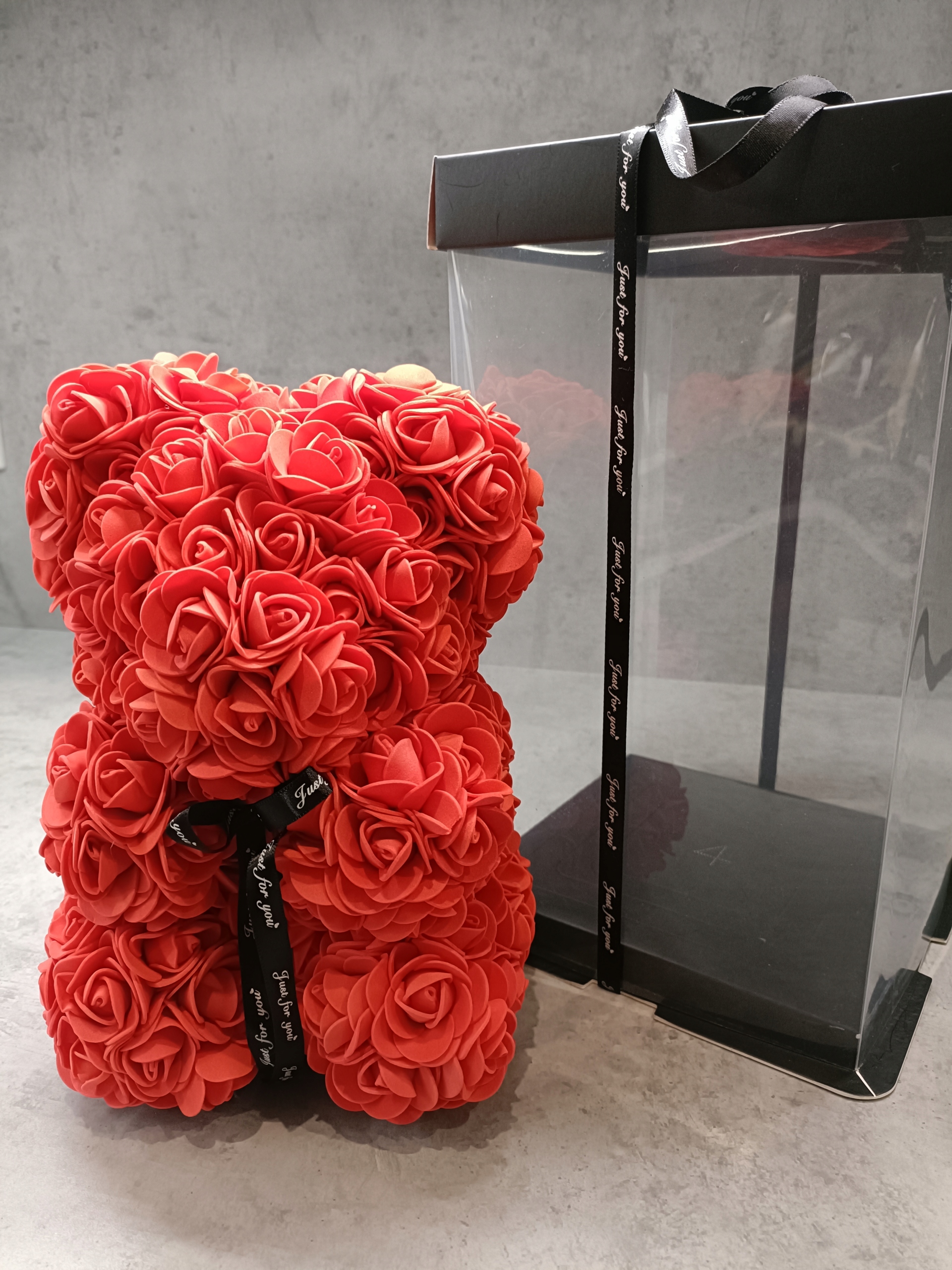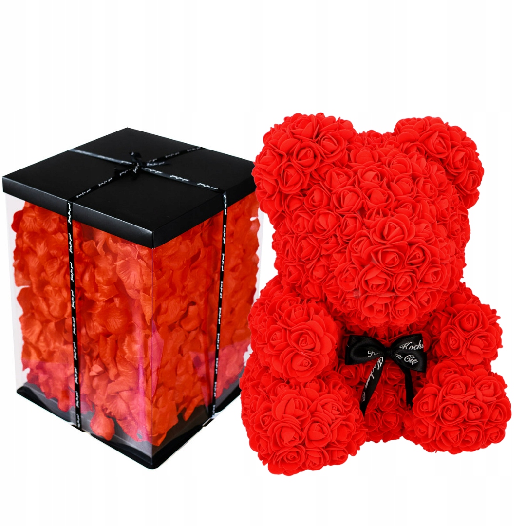 ВЕДМЕДЬ З ТРОЯНДАМИ НАБІР КОРОБКА З ПЕЛЮСТКАМИ ТРОЯНД В ПОДАРУНОК!