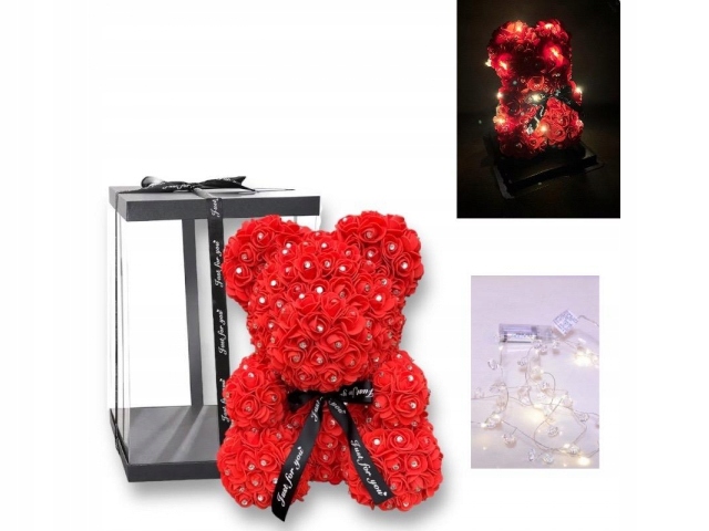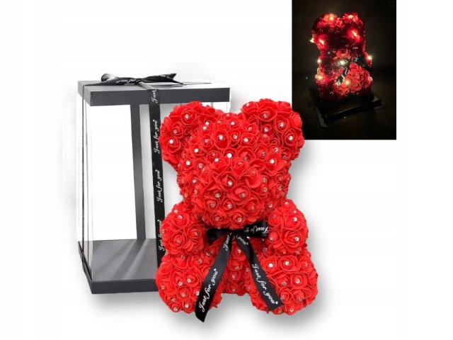ВЕДМЕДИК З ЧЕРВОНИМИ ТРОЯНДАМИ З ЦИРКОНІЯМИ ПОДАРУНОК НА ДЕНЬ СВЯТОГО ВАЛЕНТИНА LED ВЕДМЕДИК
