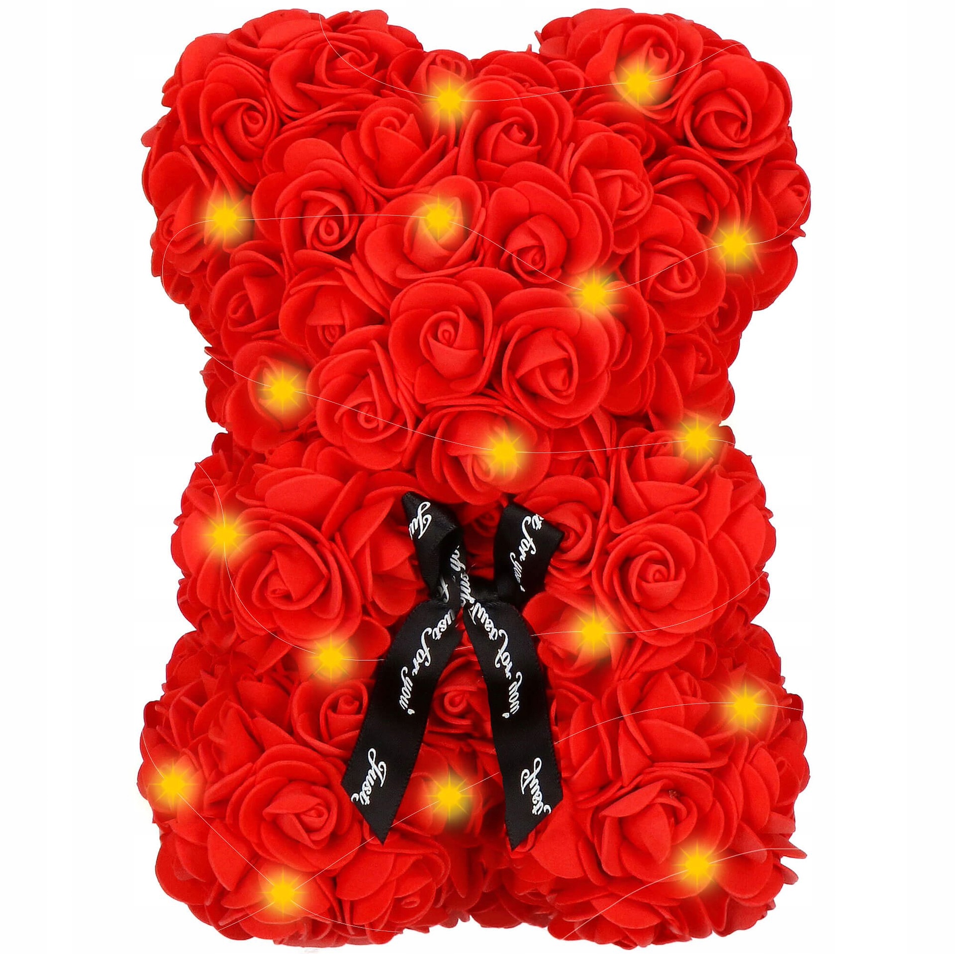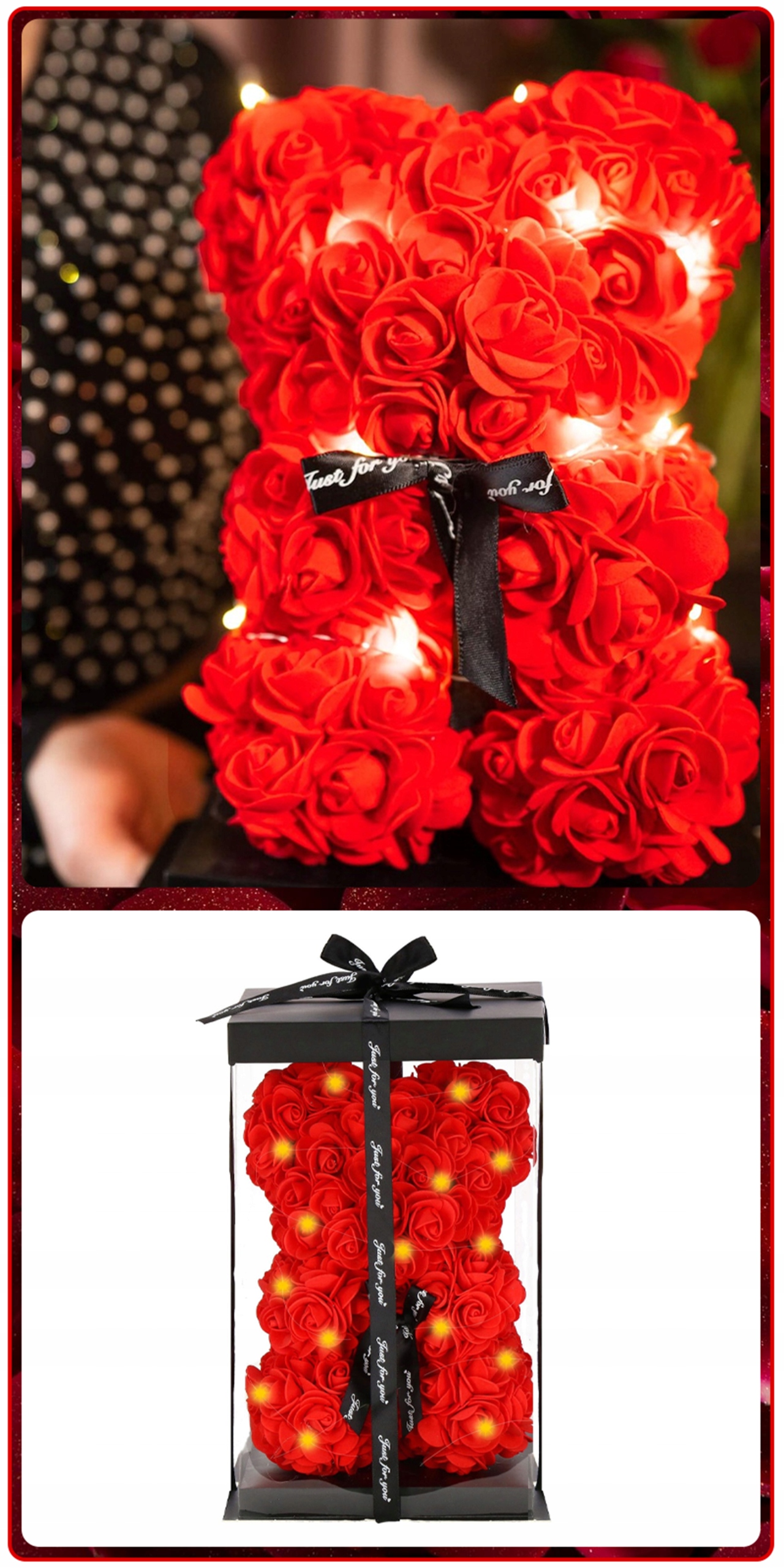 МИШКА С РОЗАМИ 28 СМ РОЗА МИШКА С ЛЕПЕСТКАМИ РОЗ С БАНТОМ ПОДАРОЧНАЯ КОРОБКА+20LED
