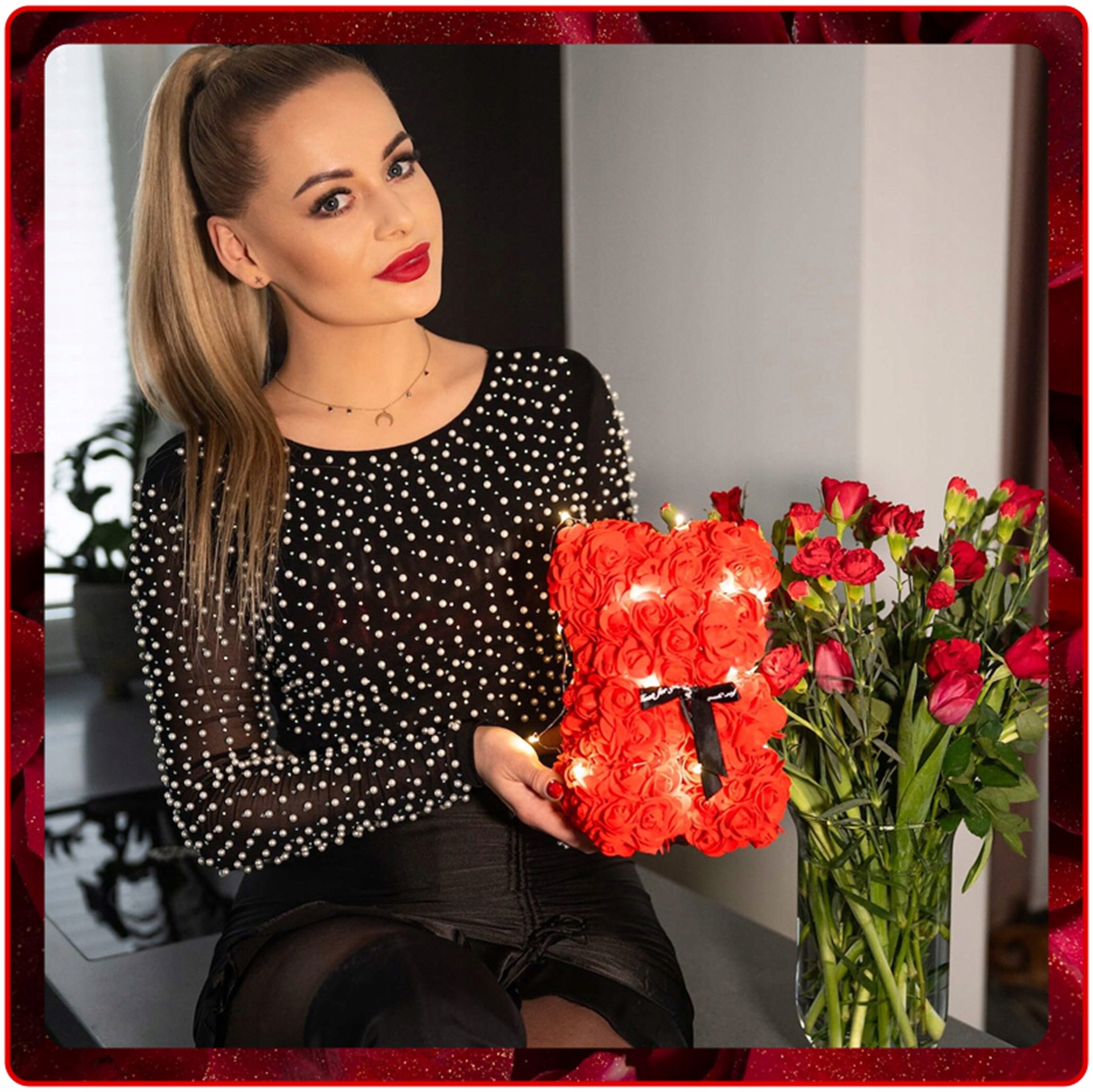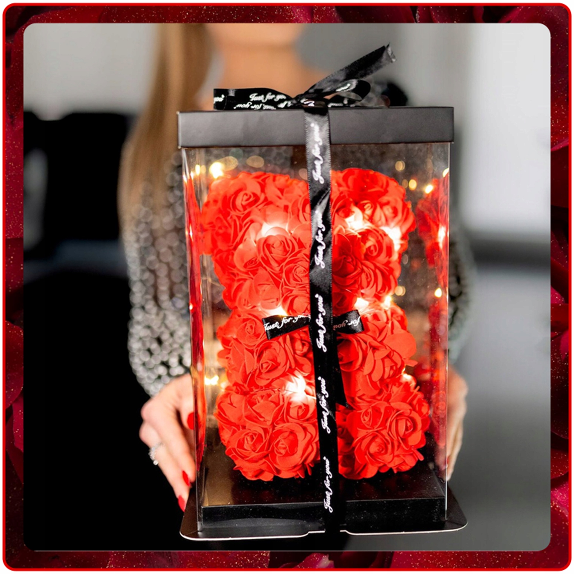 Наш плюшевый мишка из лепестков роз от Springos®, также называемый "Розовый Тедди", освещенный тонкой светодиодной подсветкой, представляет собой вариант подарка в эксклюзивной версии и хит, покоривший сердца интернет-пользователей по всему миру.
