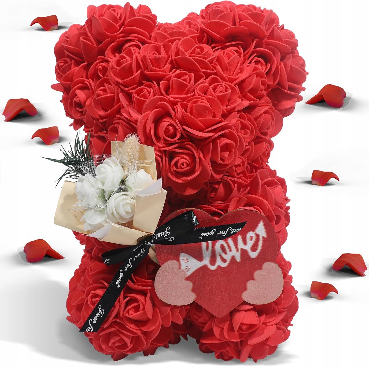 ВЕДМЕДИК З ТРОЯНДАМИ 25СМ З ПЕЛЮСТОК ТРОЯНД + НАМИСТО