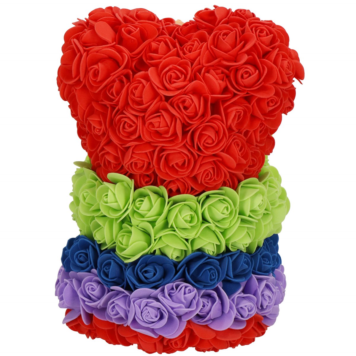 ВЕДМЕДИК З ТРОЯНДАМИ 30 СМ ТРОЯНДОВИЙ ВЕДМЕДИК З ПЕЛЮСТКАМИ ТРОЯНД БАНТ ВЕСЕЛКА ПОДАРУНКОВА КОРОБКА