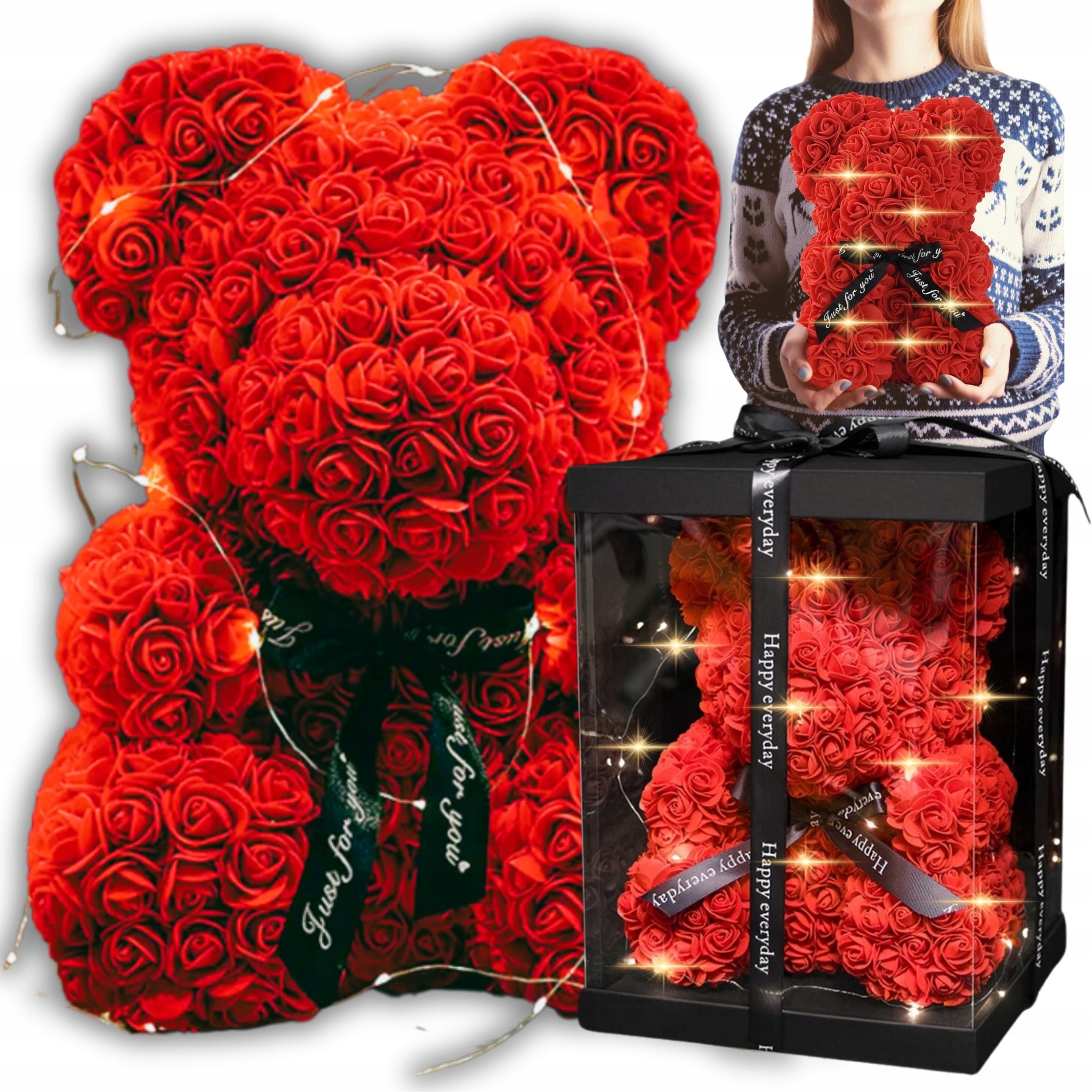 ВЕДМЕДИК З ТРОЯНДАМИ ВЕЛИКИЙ XXL ПОДАРУНОК ДО ЖІНОЧОГО ДНЯ З LED ЛІХТІВКАМИ 40 СМ БЕЗКОШТОВНО