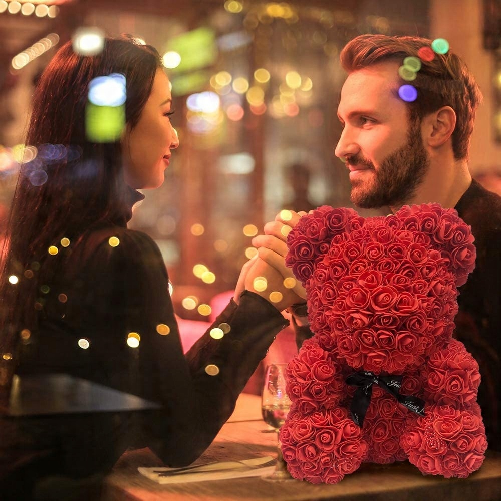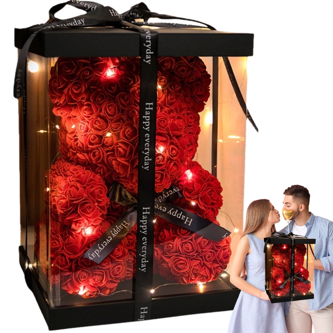 ВЕДМЕДИК ЗІ СВІТЛОДІОДНИМИ ТРОЯНДАМИ 40 СМ + МИЛЬНІ ТРОЯНДИ + НАБІР НАМИСТА ПОДАРУНОК ДО ДНЯ СВЯТОГО ВАЛЕНТИНА