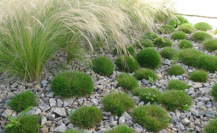 Вечнозеленая, нетребовательная карликовая разновидность овсяницы, которую обычно называют «медвежьим мехом», образующая очень декоративные пышные зеленые пучки!