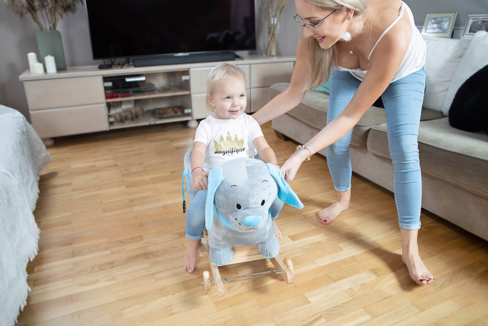 Игрушка является отличной альтернативой лошадке-качалке. Благодаря своей конструкции он намного безопаснее, и в него могут играть дети, которые уже научились сидеть самостоятельно.