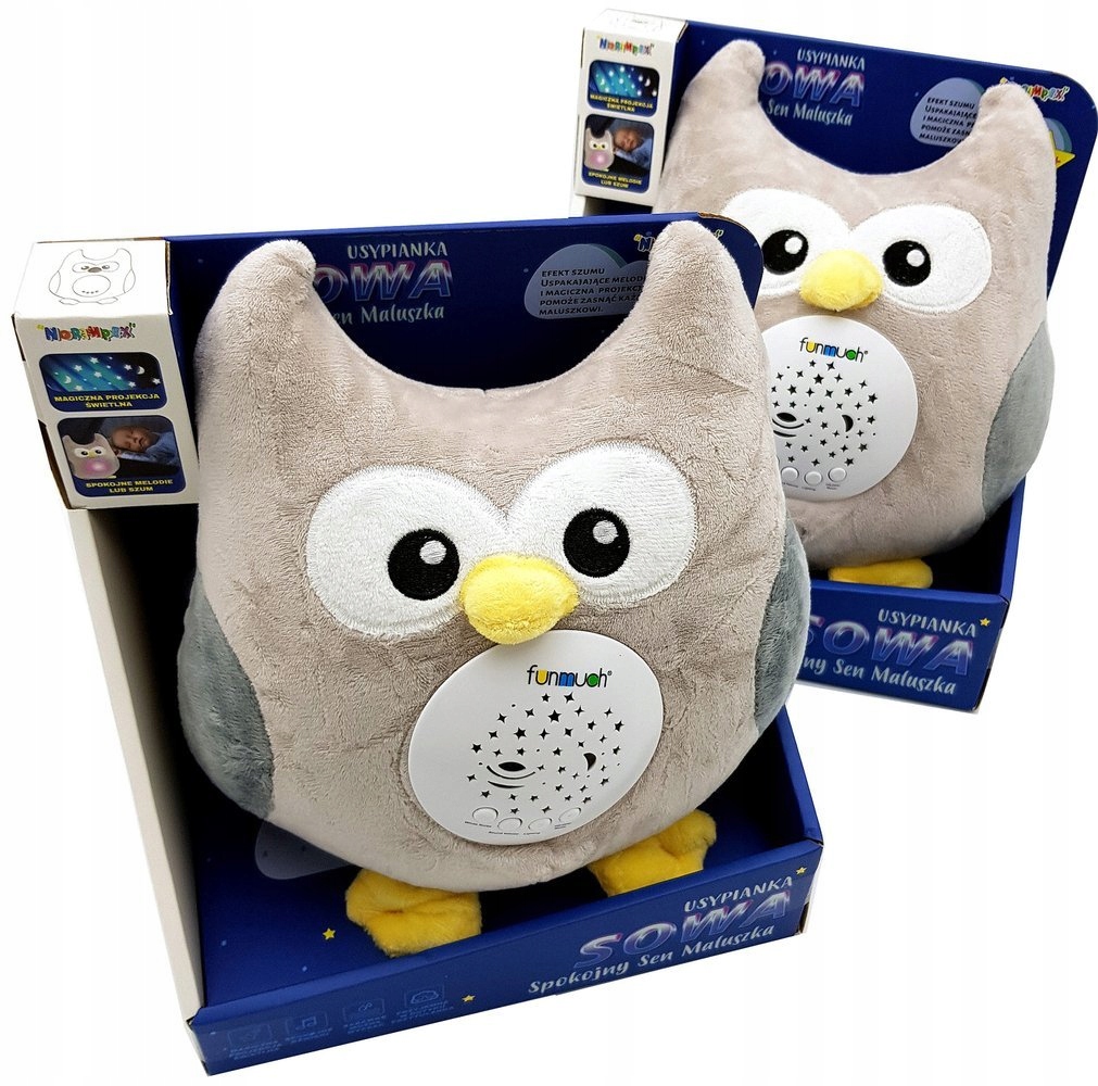 Сова игрушка для сна упакована в привлекательнуюупаковку ПОЛЬСКОГО цвета.