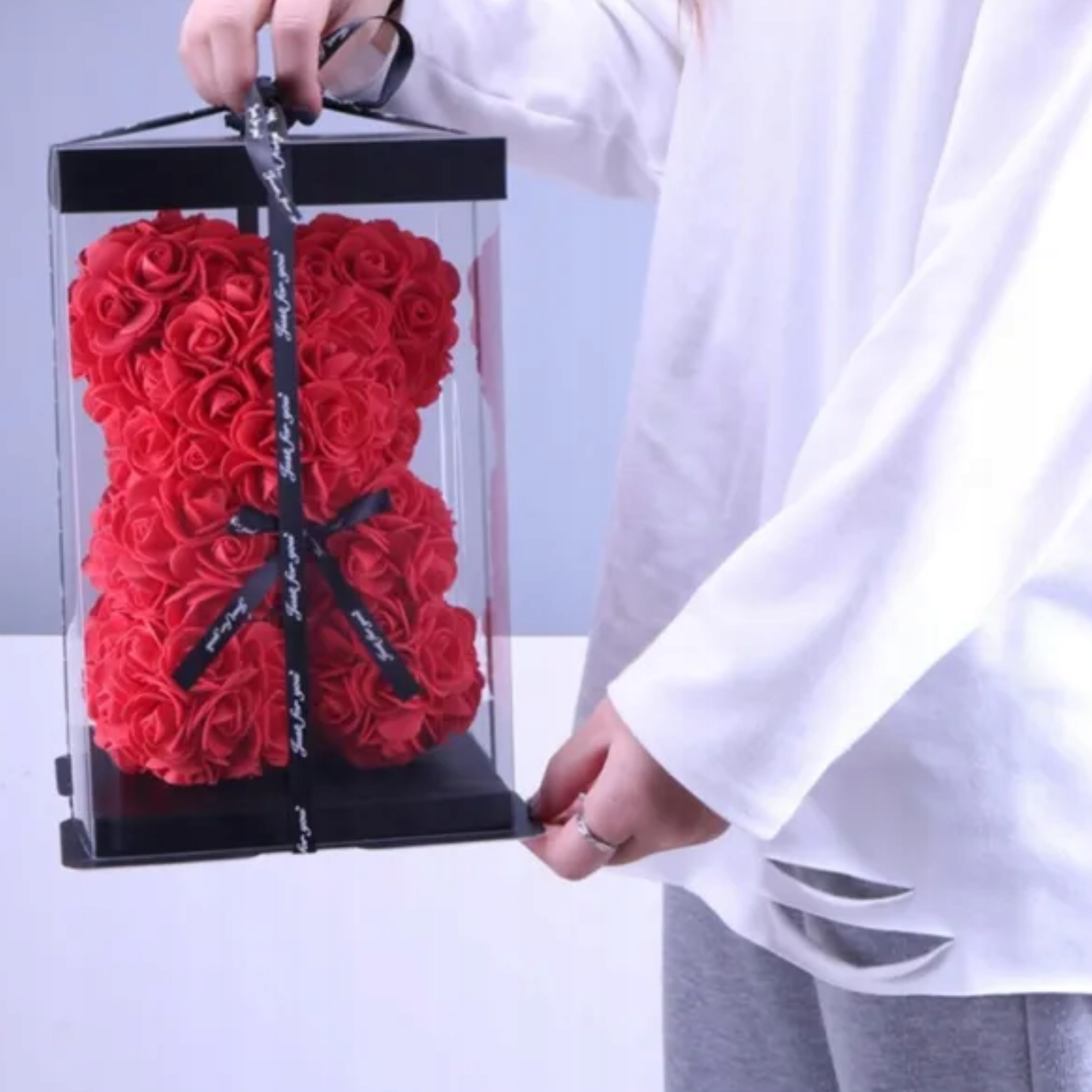 Лепестки роз были изготовлены из высококачественной пены PE, которая не только выглядит естественной , но также является мягким и пушистым . Такой медведь не только красивый, но и приятный на ощупь, что делает его подарок, который будет работать в любом интерьере .