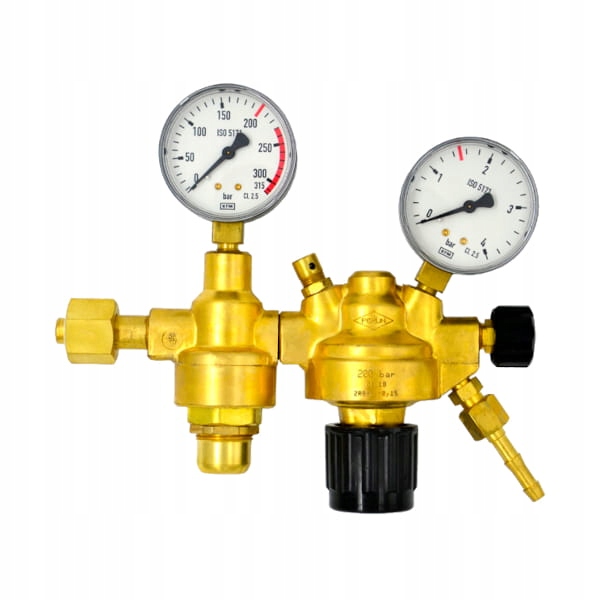 Редуктор двухступенчатый цилиндр без рычага с двойной системой редукции (опускания) давление газа. На первом этапе давление на входе снижается. среднюю высоту, а на втором этапе определяется необходимое давление розетка (рабочая). Двухступенчатые редукторы по сравнению с редукторами одноступенчатые машины характеризуются гораздо большей точностью обслуживания выходное давление во всем диапазоне опорожнения цилиндра. Кроме того, есть редукторы. более устойчив к замерзанию при большом расходе газа и ниже температура окружающей среды.